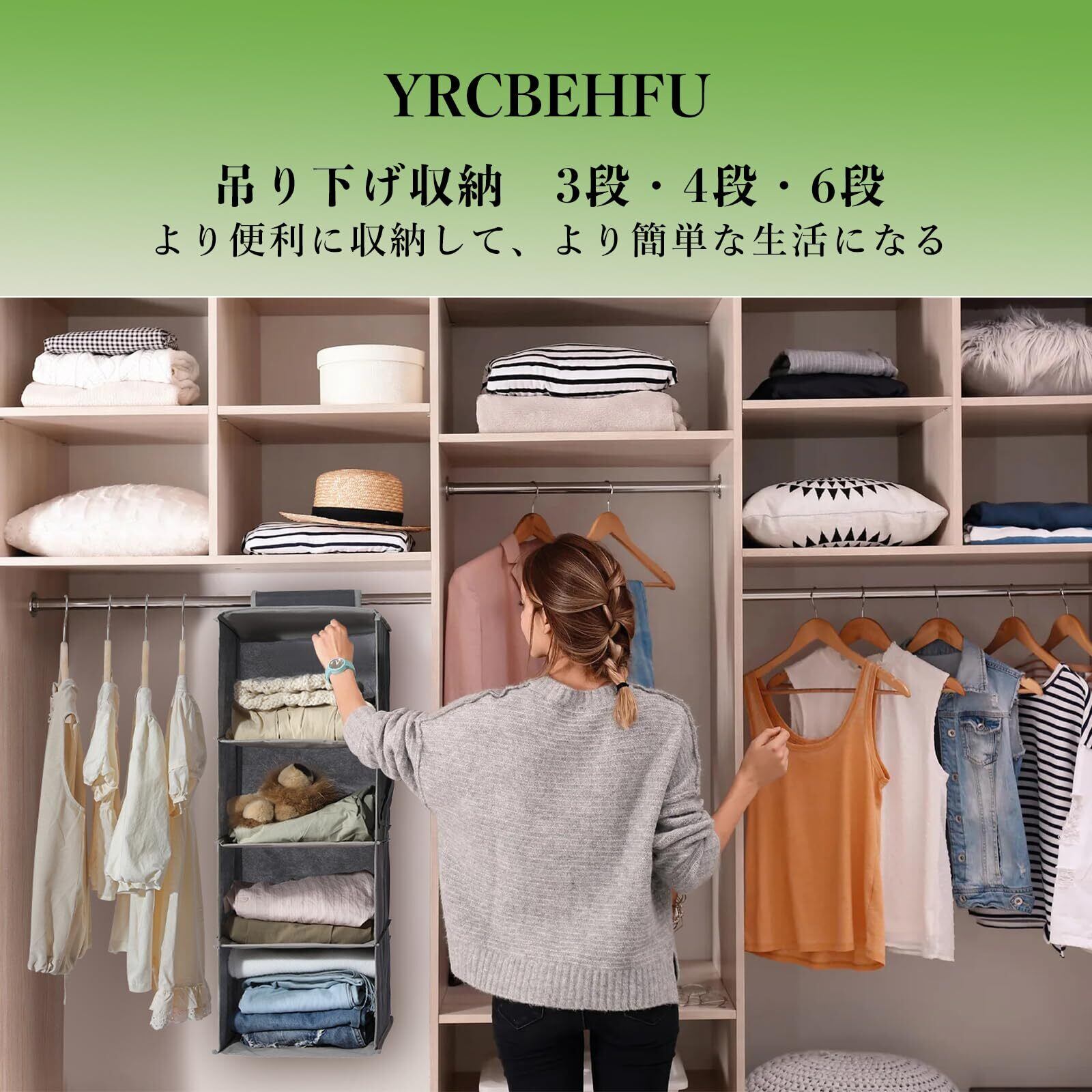 YRCBEHFU 吊り下げ収納 4段 衣類ラック クローゼット 収納吊り下げ 【最新竹製天然版】大容量 帽子/鞄 収納ラック 取付簡単 折り畳み式 旅行/出張 30x30x80cm(グレー、4段)