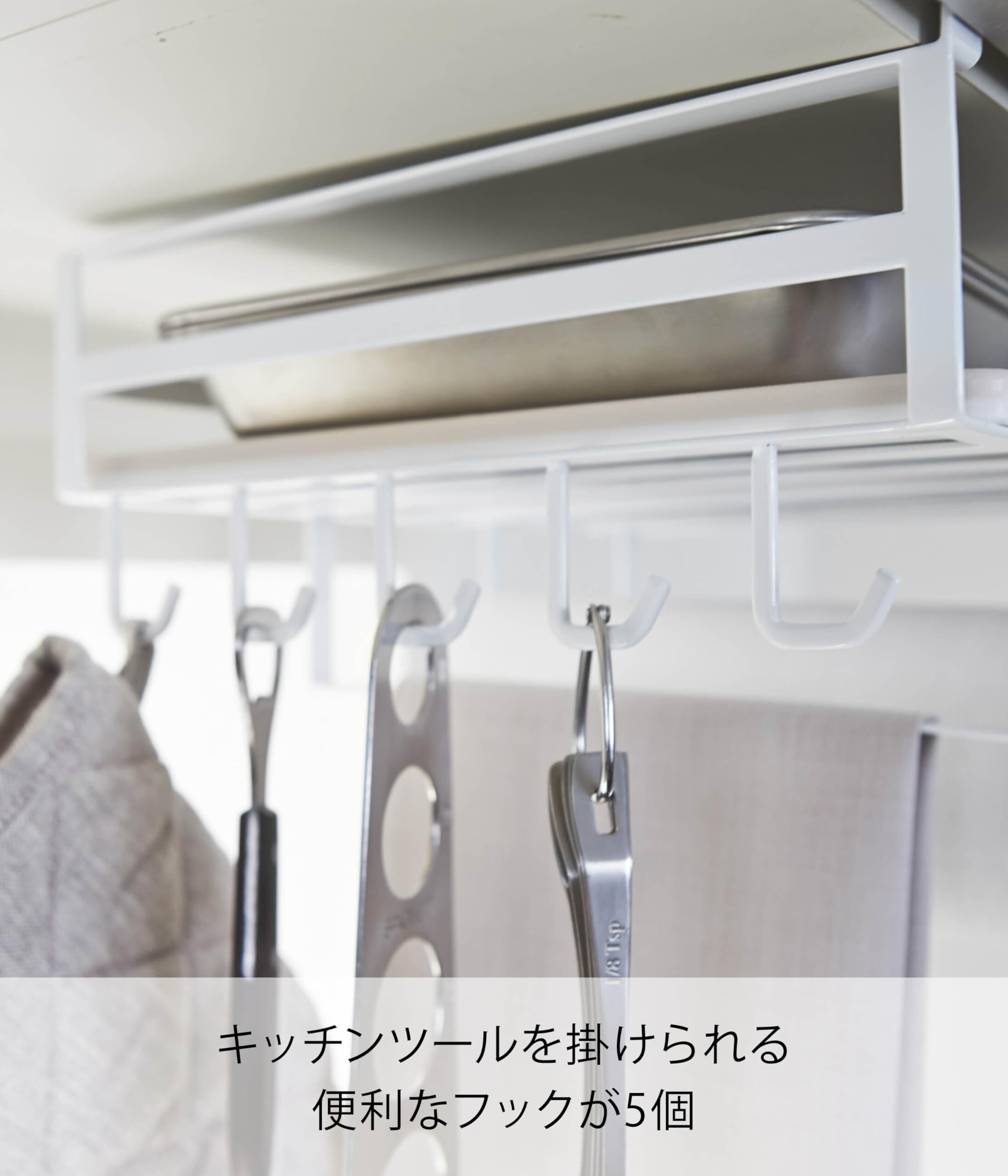 キッチンツールを掛けておくのに便利なフックが5個