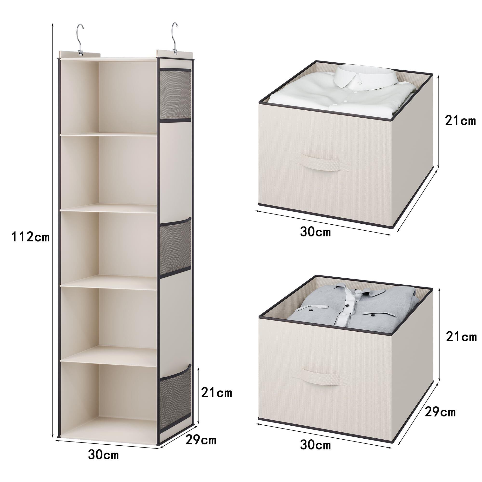 YOUDENOVA 吊り下げ収納 クローゼット 5段 引き出し付き 折り畳み 不織布 衣類ラック 帽子 タオル ぬいぐるみ 下着 吊るす収納 大容量 省スペース サイドポケット 収納バック 30x29x112cm (ベージュ) | Lulu