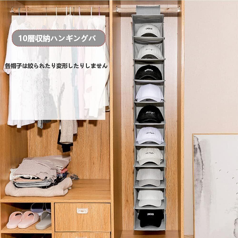 帽子 収納 吊り下げ 10段 帽子掛け キャップハンガー キャップ収納 大容量 収納ケース 野球帽ラック 型崩れ防止 防湿防カビ 防塵 不織布 折りたたみ 多機能 省スペース クローゼット (カバー付き)