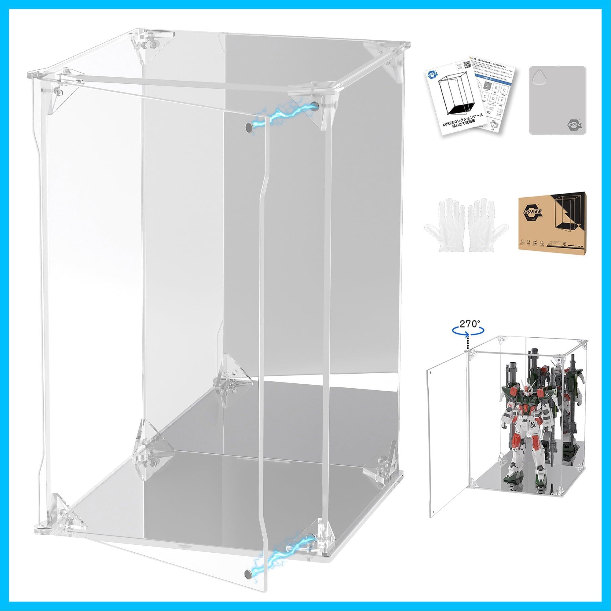 KUKER フィギュアケース アクリルケース UVカット 台座ミラー 背面ミラー マグネット付き 前扉 コレクションケース ディスプレイケース ショーケース 組み立て式 汚れ防止 手袋 クリーニングクロス付き (幅15×奥行15×高さ25cm,台座ミラー+背面ミラー) | Lulu