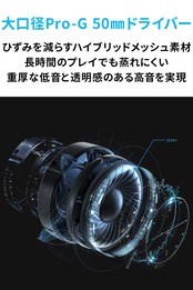 ・【一歩先のプレイ】強化されたPro-G 50mmドライバーに編み込みハイブリッド メッシュ素材を採用し、どんな音量でもこれまで以上のディテール、深み、透明感を提供。口径が大きくなったドライバーは、かつてない優れたパフォーマンスを発揮します。たとえば、強烈な爆発音や重厚なサウンドトラックなどの低音は、より一層密度の高い臨場感のある音に。声、足音、銃声などの高音では、驚きの透明感と正確な再現性を実現しました。