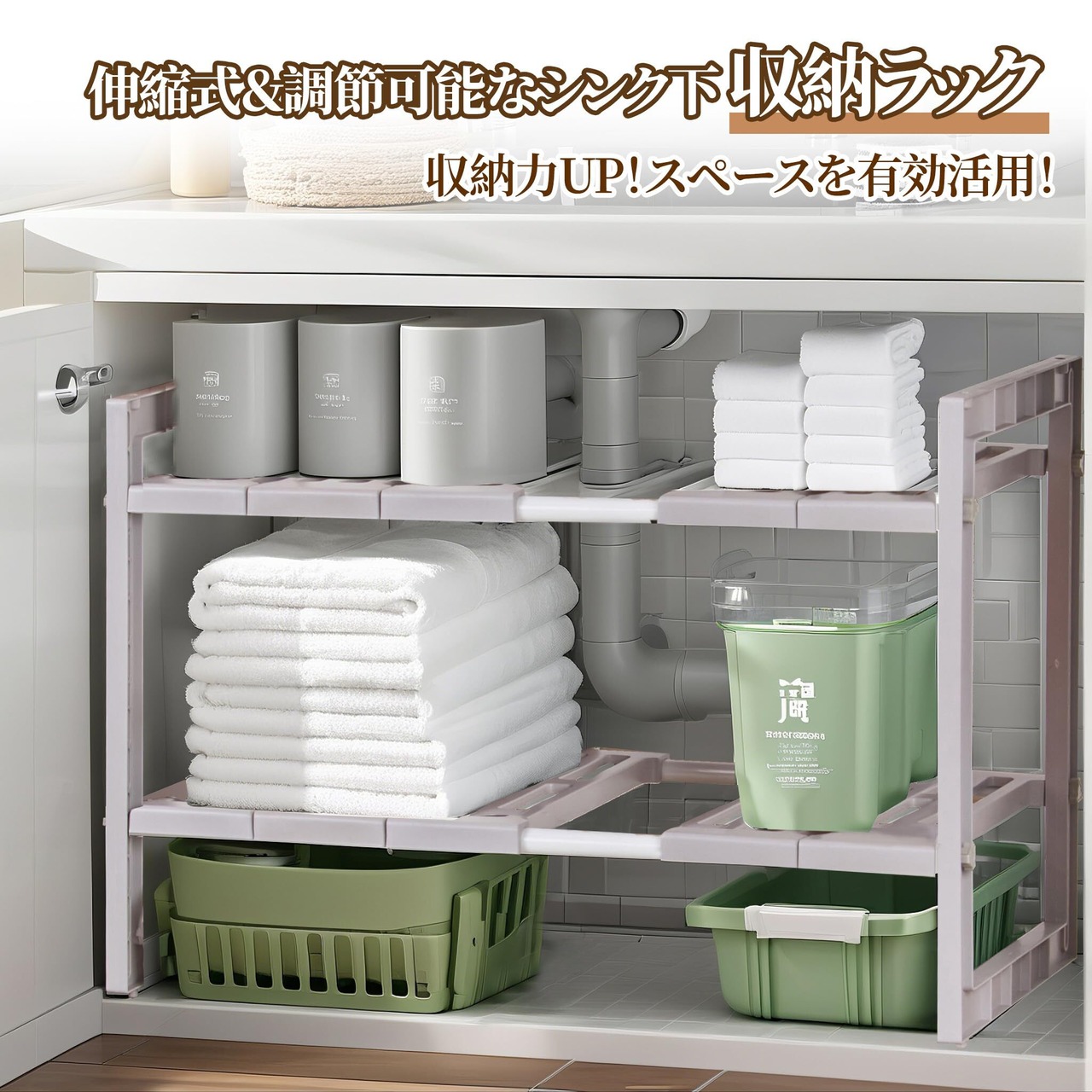 VECELO シンク下 収納 シンク下収納ラック 伸縮式 キッチン下収納 食器収納 伸縮棚 押入れ収納ラック 整理棚