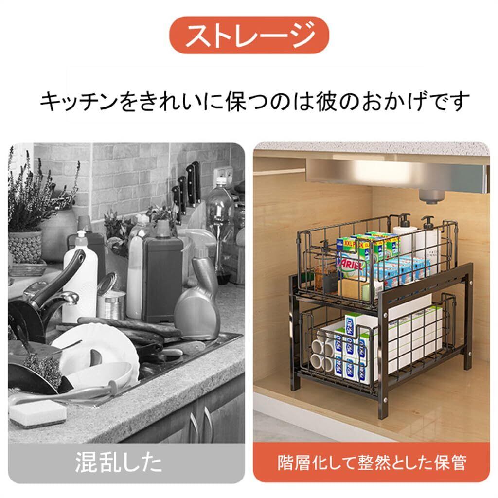 シンク下 収納 引き出し スライド しんくした収納ラック 引き出し 大容量 2段 キッチンシンク下収納ラック キッチンラック キッチン収納ラック 洗面台下 収納 シンク下 組立簡単 幅26×奥行き37×高さ38.5cm 省スペース ブラック [並行輸入品] | Lulu