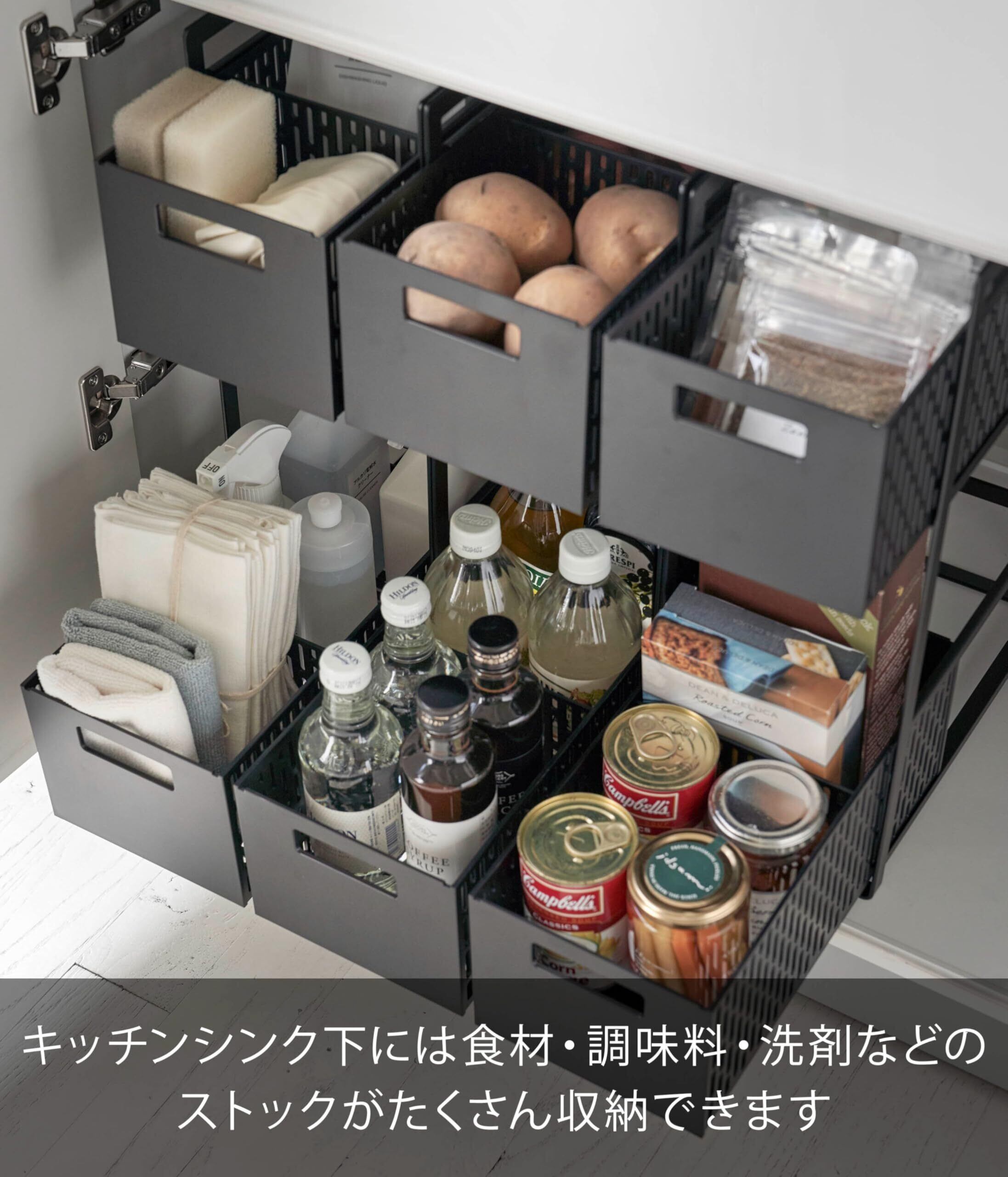 山崎実業(Yamazaki) シンク下 収納バスケット 2段 ブラック 約W16×D32.5×H46cm タワー tower スライド式 収納ラック 仕切り付き 本体完成品 5219