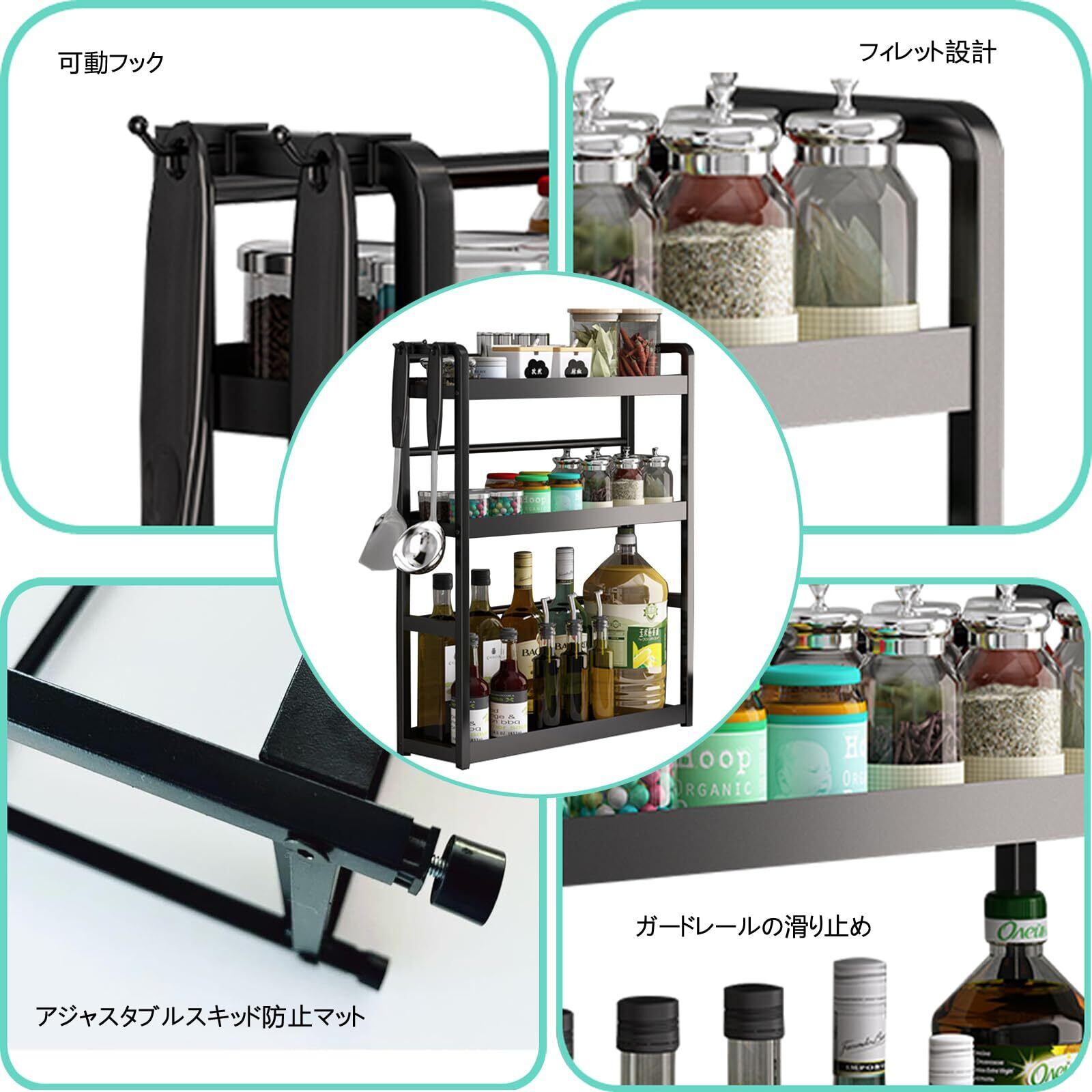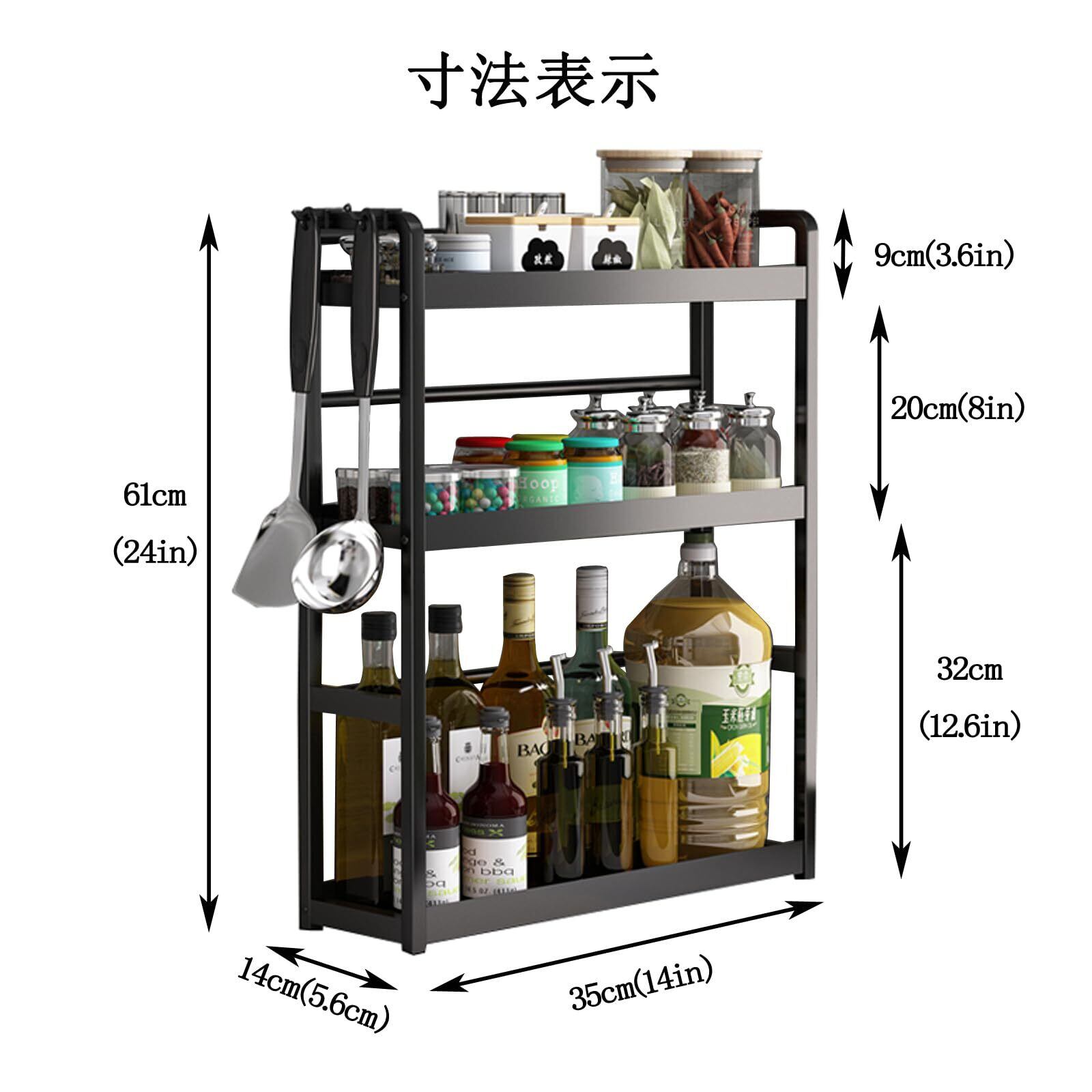 musltaiy 調味料ラック 多機能キッチン 収納スパイスラック卓上ラック大容量台所 収納ラック キッチンラック調味料棚(三段式) (3rd floor 14in, Black 黒)