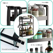 2.キッチン調味料 収納ラック:この調味料収納は大容量、二段、三段設計で、型番の規格がそろっていて、サイズはキッチンの各位置に適しています。スパイスラックフレームは粉体塗装を施し、色あせない。また、 スパイスラック足用の滑り止めが付いているので安定感があり、何より柔らかい滑り止めは家具を傷つけない。柔らかいゴムが貴重な家具に触れると傷などが残らない。