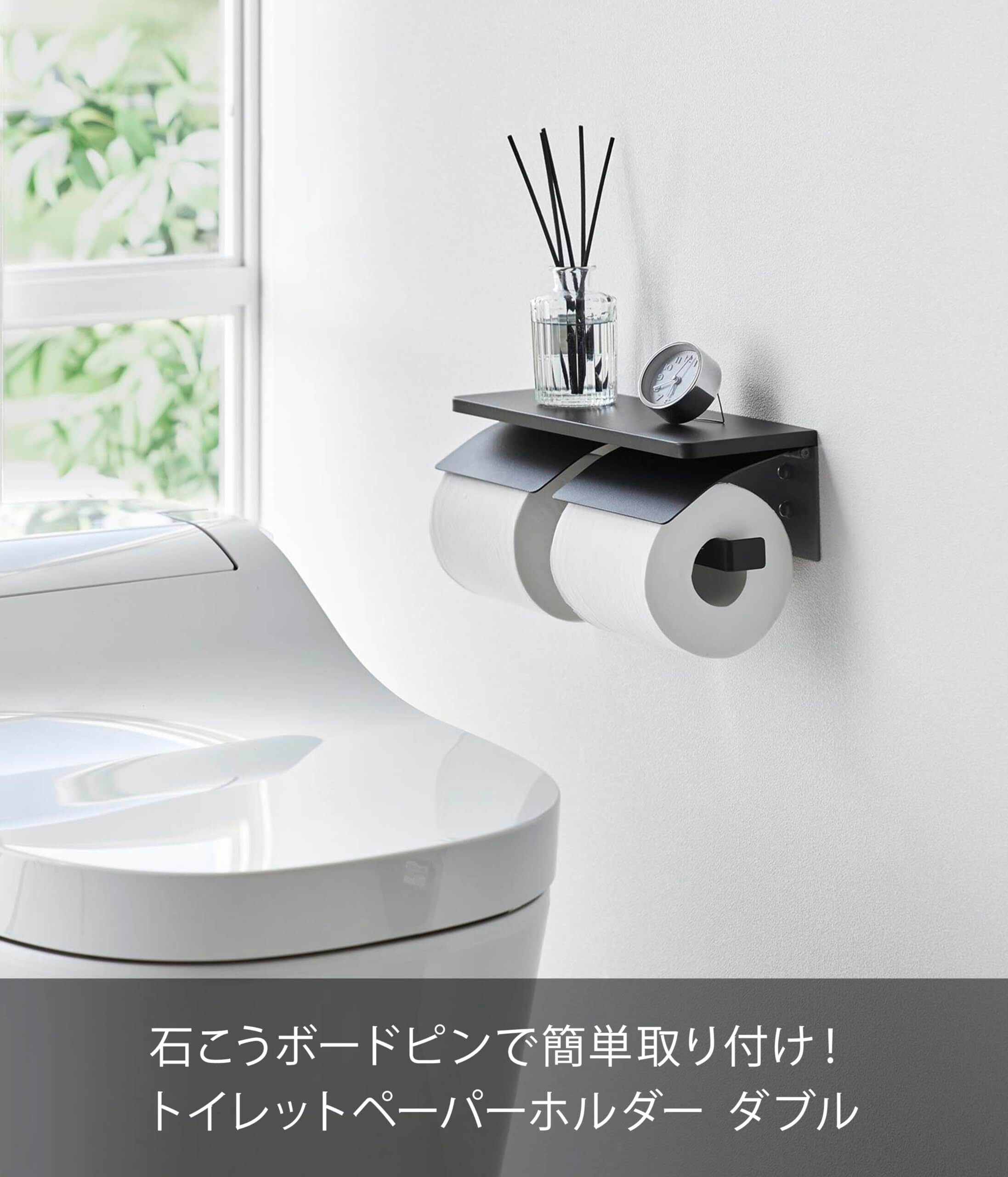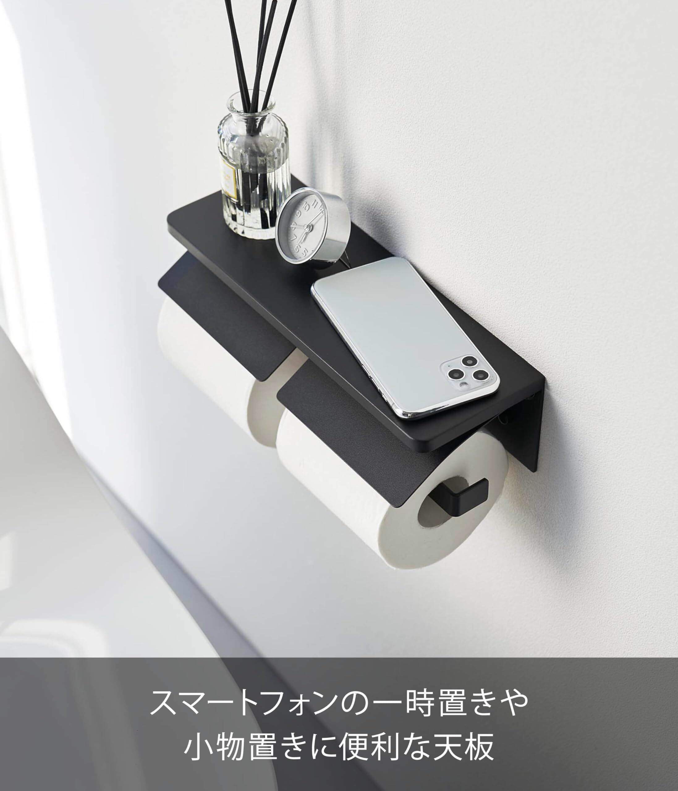 山崎実業(Yamazaki) 【石こうボードピンセット・木ネジ 付属】 ウォール トイレットペーパーホルダー ダブル 石こうボード壁対応 ブラック W28.5×D12×H8.5cm タワー tower 棚付き 1300 | Lulu