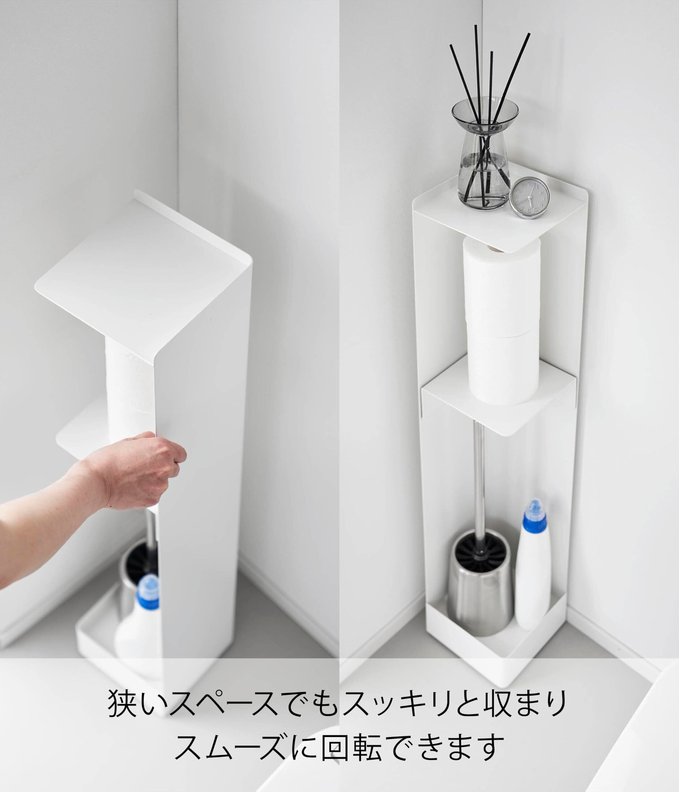 山崎実業(Yamazaki) 【完成品】 キャスター付き スリム トイレラック ホワイト W16×D16×H80.5cm(キャスター含む) タワー tower その場で回転 可動式棚板付き トイレ収納 1489 | Lulu