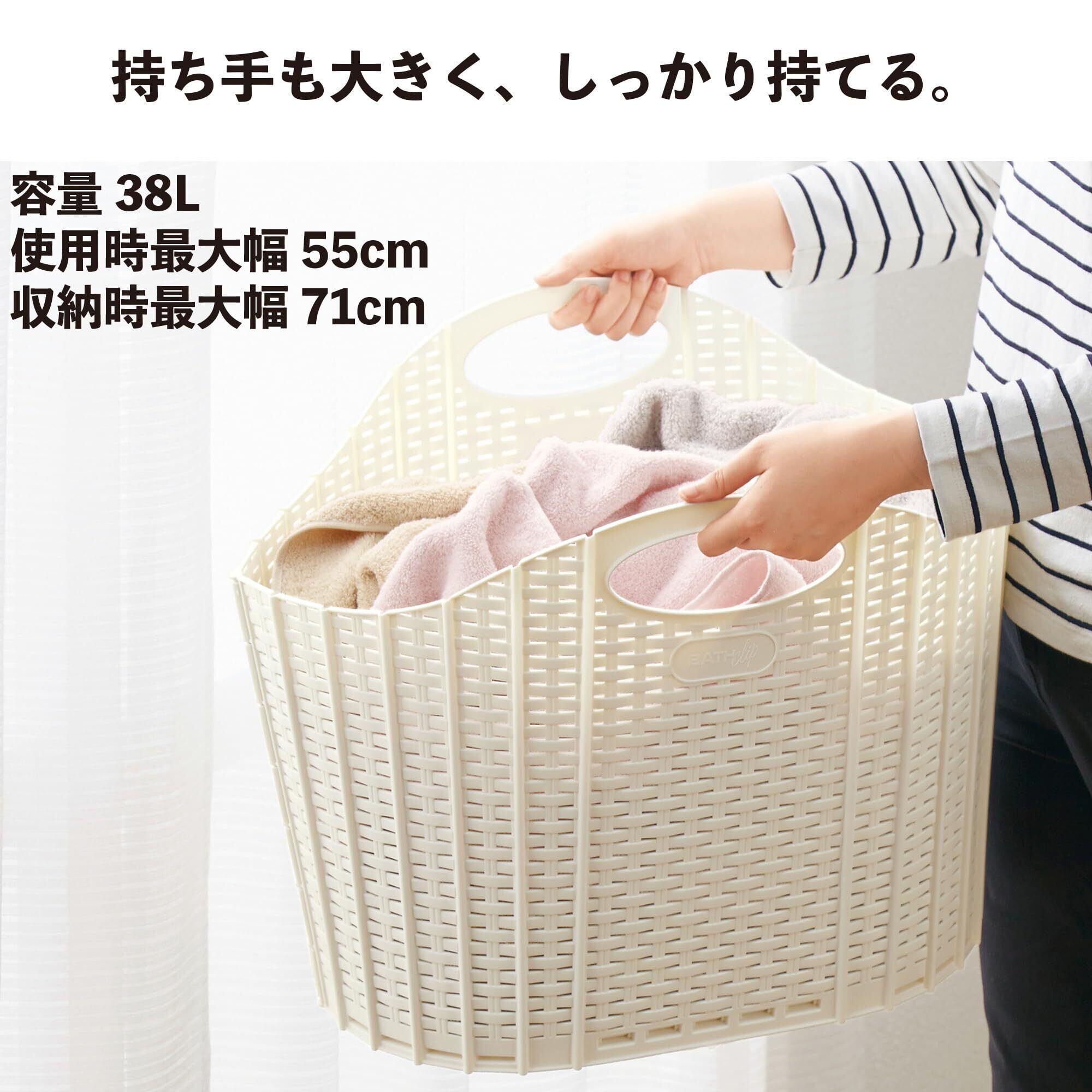 セイエイ(seiei)【 折りたためる ランドリー バスケット ラタン調 アイボリー (大)38L 120882 新パッケージ】ランドリーバスケット ランドリー収納 洗濯カゴ 洗濯物収納 物干し 洗濯かご 大容量 折りたたみ ランドリー収納 おしゃれ 軽量 取っ手付き | Lulu