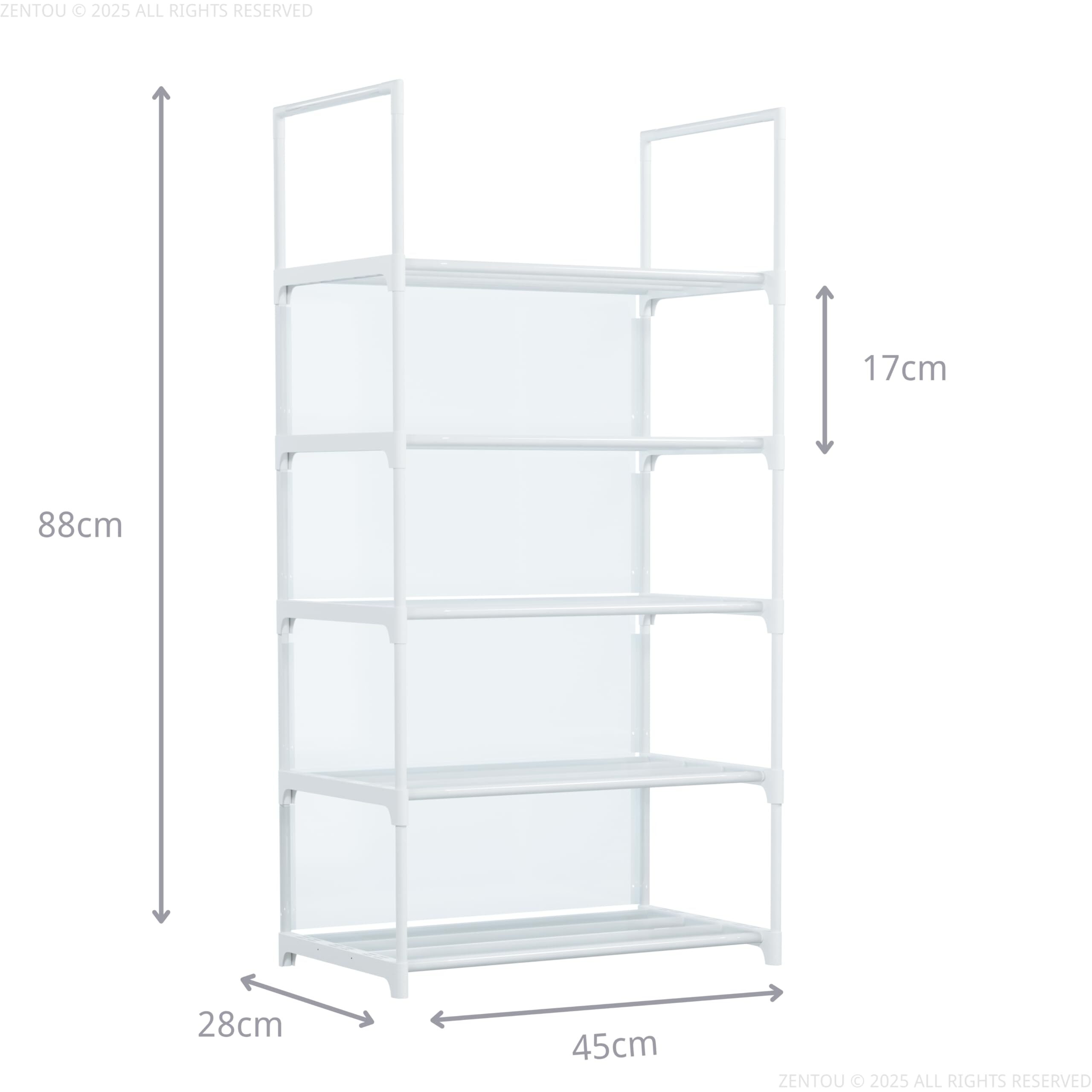 ZENTOU 5段 白 【新型壁&靴保護機能】 シューズラック スリム 狭い玄関対応 大容量8~10足 玄関収納 おしゃれ 白棚 靴箱 下駄箱対応 組立簡単 壁面保護 防汚 防水 半透明PPシート付 幅45×奥行28×高さ88cm | Lulu