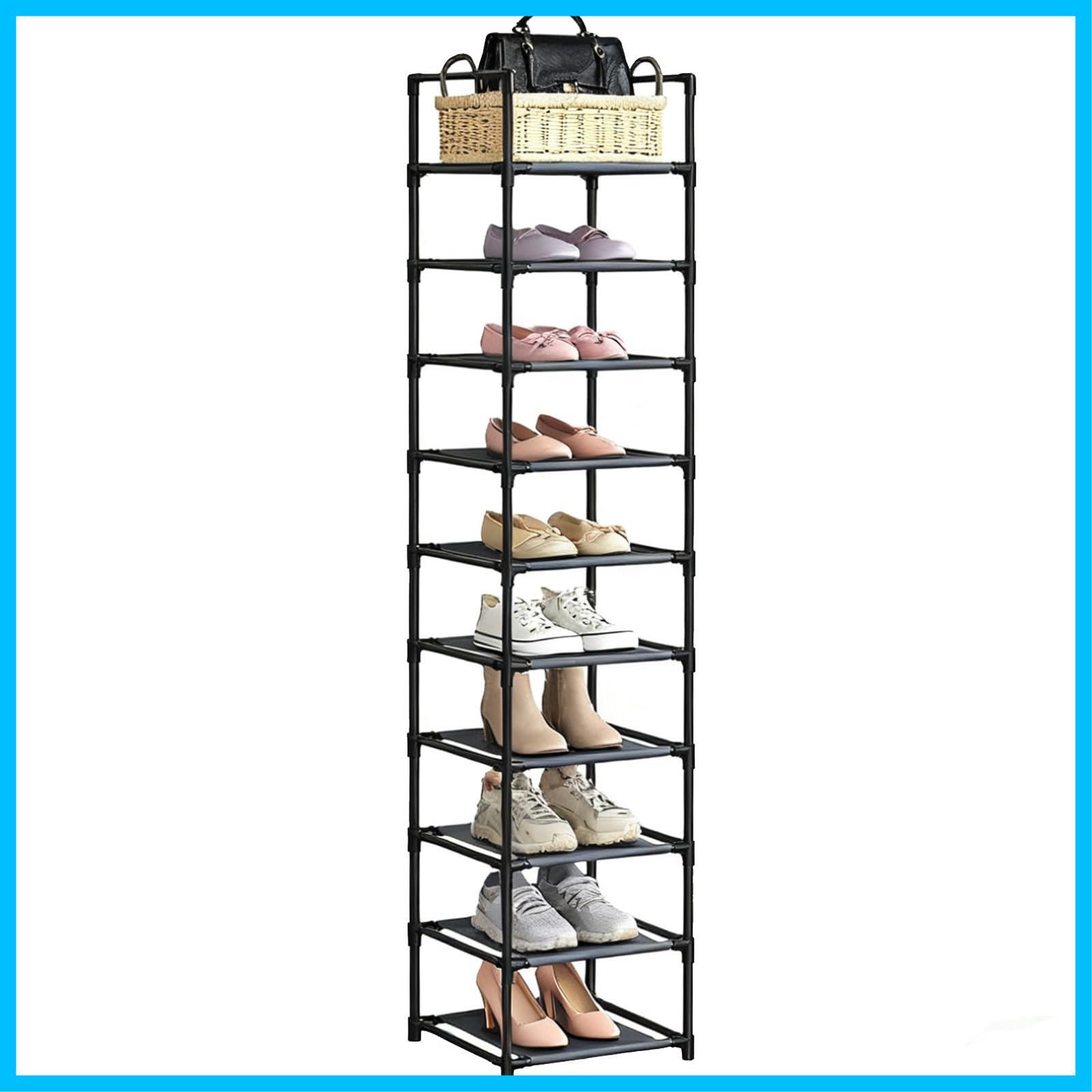 YRCBEHFU シューズラック 10段 靴収納 最新防塵版 シューズラックスリム 省スペース 進化した不織布 靴棚 寝室/玄関に靴を効率収納 靴入れ 組み立て式 幅約30×奥行30×高さ175cm(10段、ブラック) | Lulu