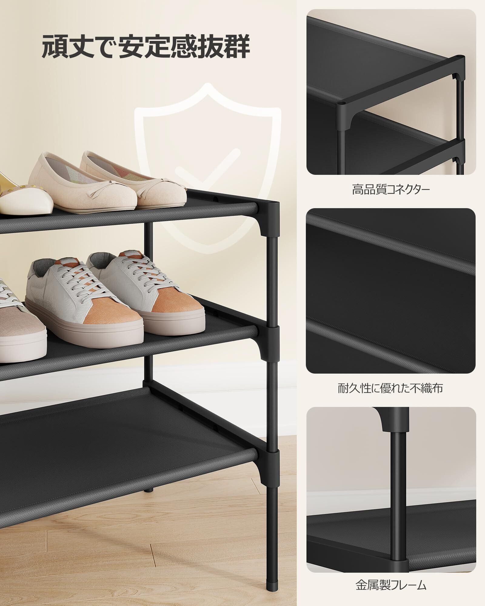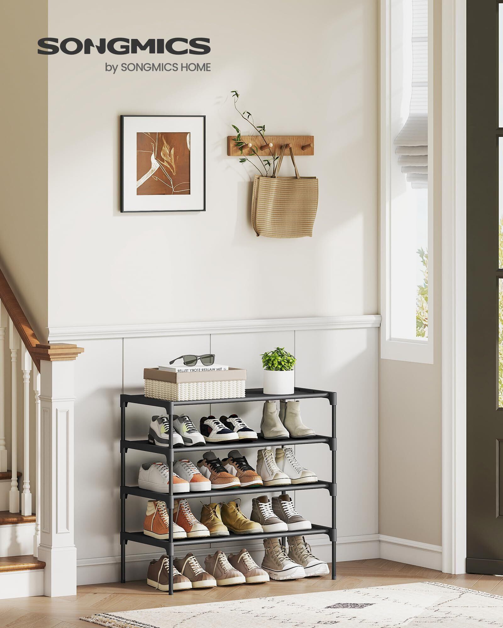 SONGMICS シューズラック 4段 省スペース 玄関・廊下用 金属フレーム 不織布棚板 ブラック LSH024BH01