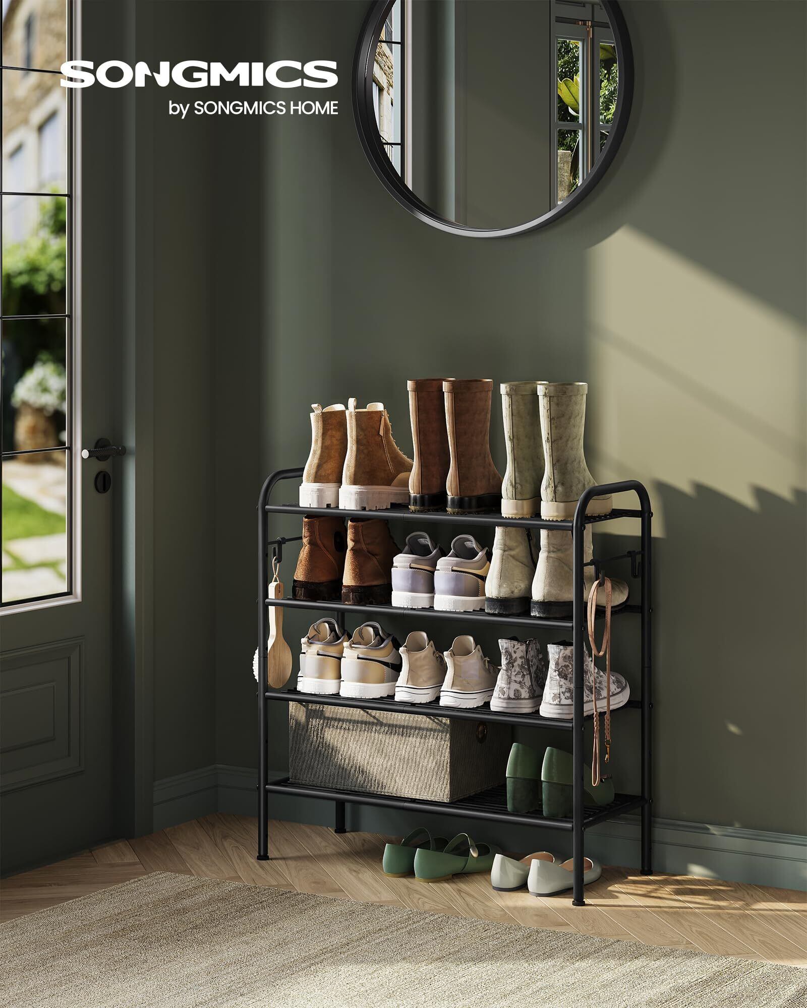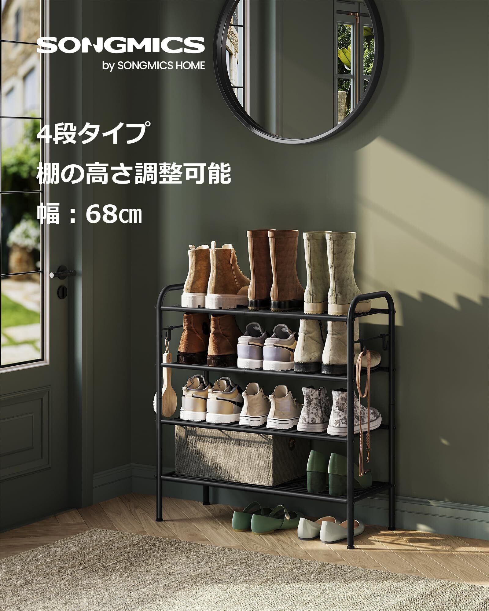 SONGMICS シューズラック スリム 省スペース 4段 玄関 おしゃれ 大容量 下駄箱 靴箱 整理 組立簡単 68x28x70.4cm LMR069B01