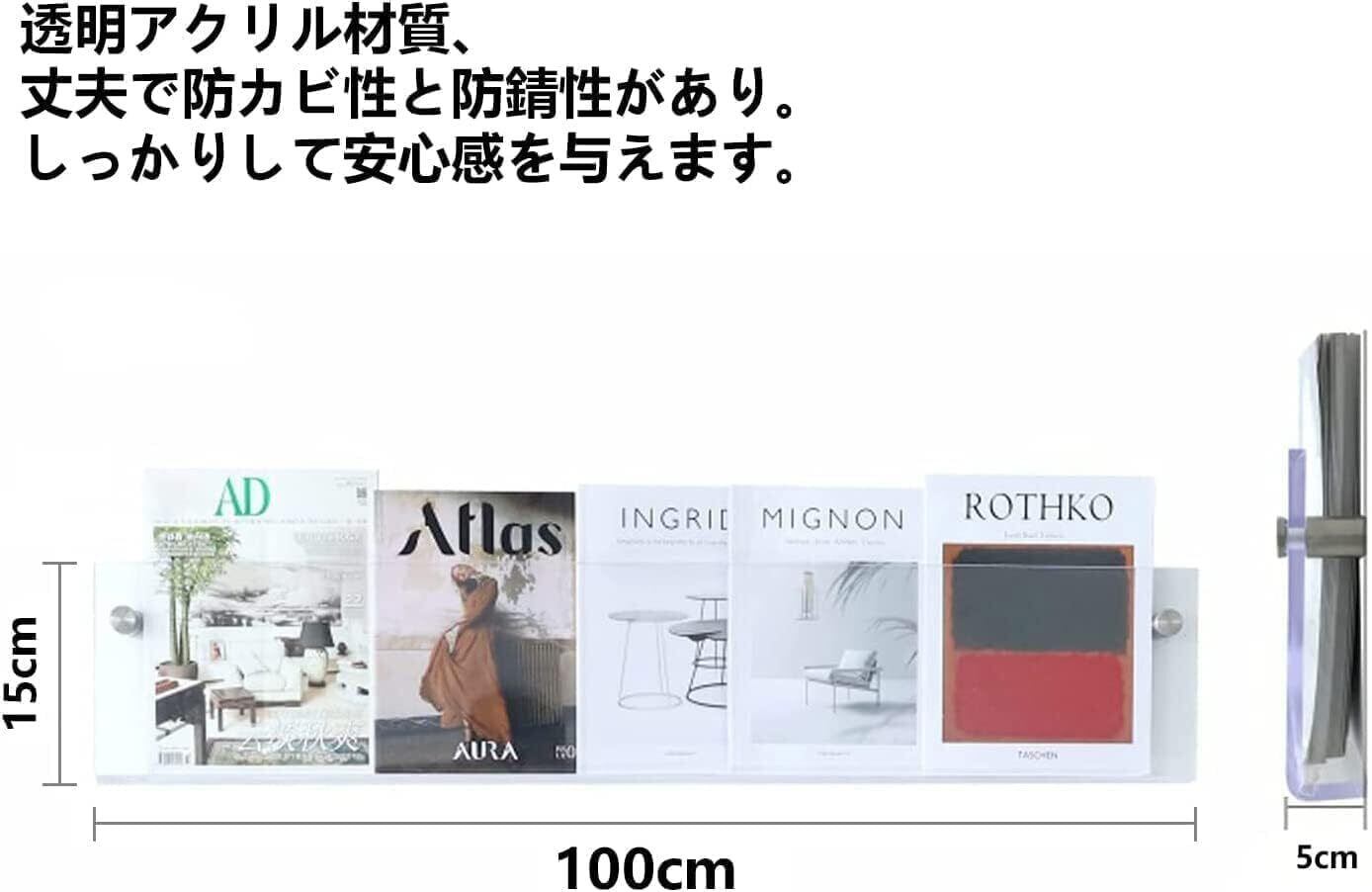 サイズ(2個セット):長さ100x高さ15x幅5cm。高級感のあるアクリル製2段式マガジンラックです、丈夫で防カビ性と防錆性があり、しっかりして安心感を与えます。透明ディスプレイは壁に簡単に設置でき、どんなオフィス装飾にも組み込まれています。マガジン収納やアイテム展示に便利、使い勝手,ファッショナブルで環境に優しく耐久性。