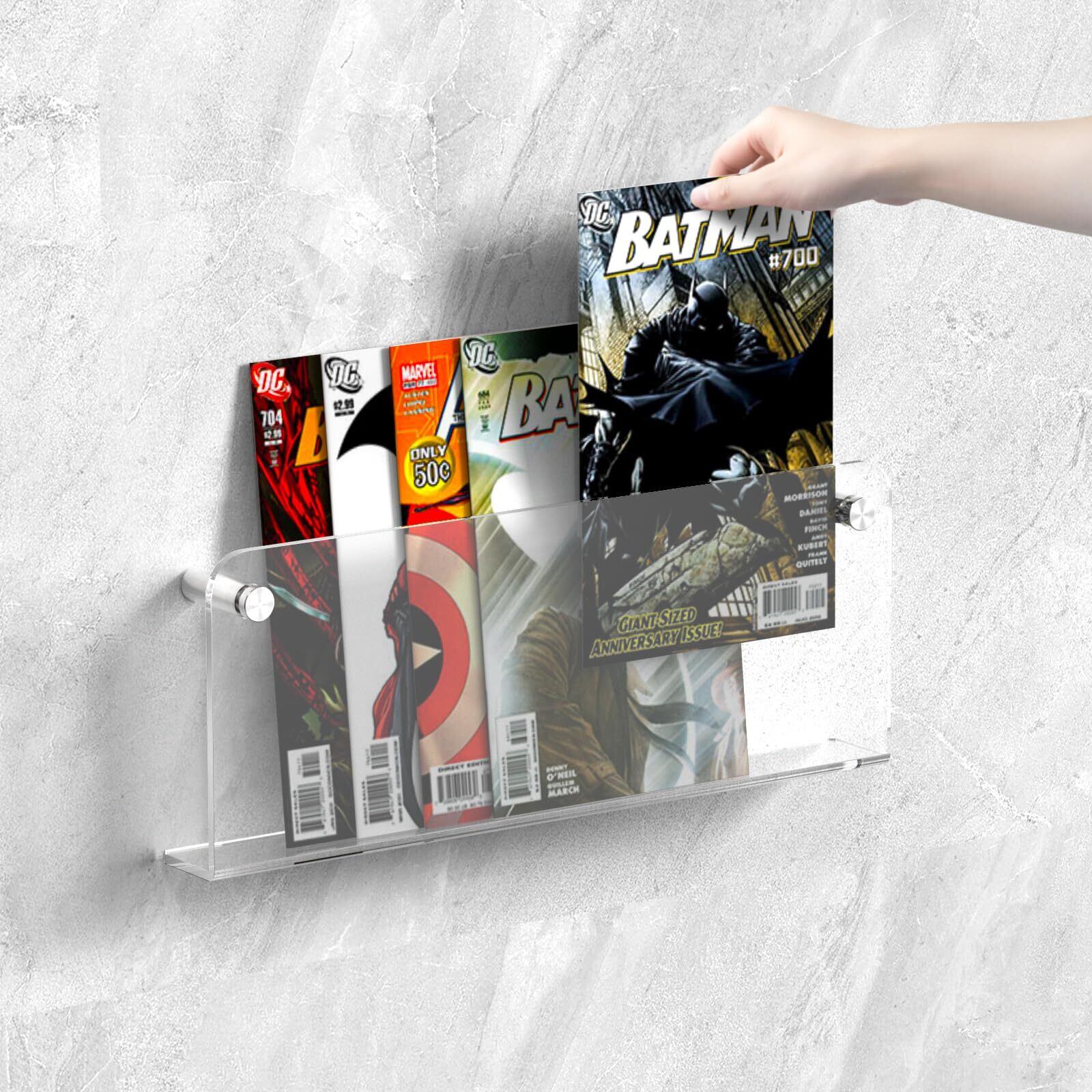 Clearcozy マガジンラック アクリル製 2個セット 壁掛け 雑誌ラック パンフレットスタンド 透明 ins風 おしゃれ 北欧 ブックシェルフ 本棚 レコード 壁面収納 展示 学校 図書館 美術館 本屋 業務用(丸角-40*15*5cm) | Lulu