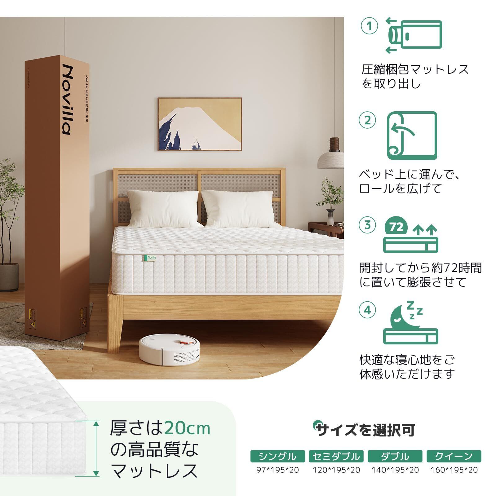 Novilla マットレス ダブル 硬め 極厚20cm ポケットコイル 硬さ180N 高反発 32D高密度 独立コイル580個 体圧分散 通気恒温 ベッドマットレス 寝返り mattress 高級スプリング 静音 底付き感無し 高耐久性 並行配列 圧縮梱包 ホワイト 140×195×20cm | Lulu