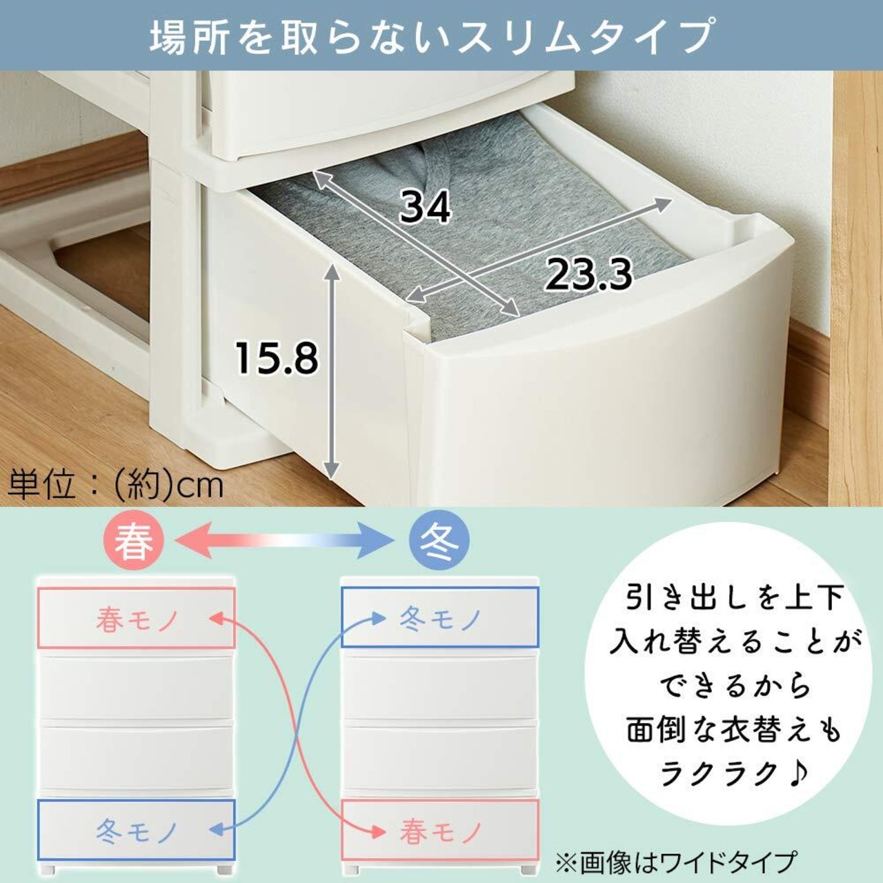 引き出しをはずして丸ごと入れ替えられるので、面倒な衣替えもラクラク。