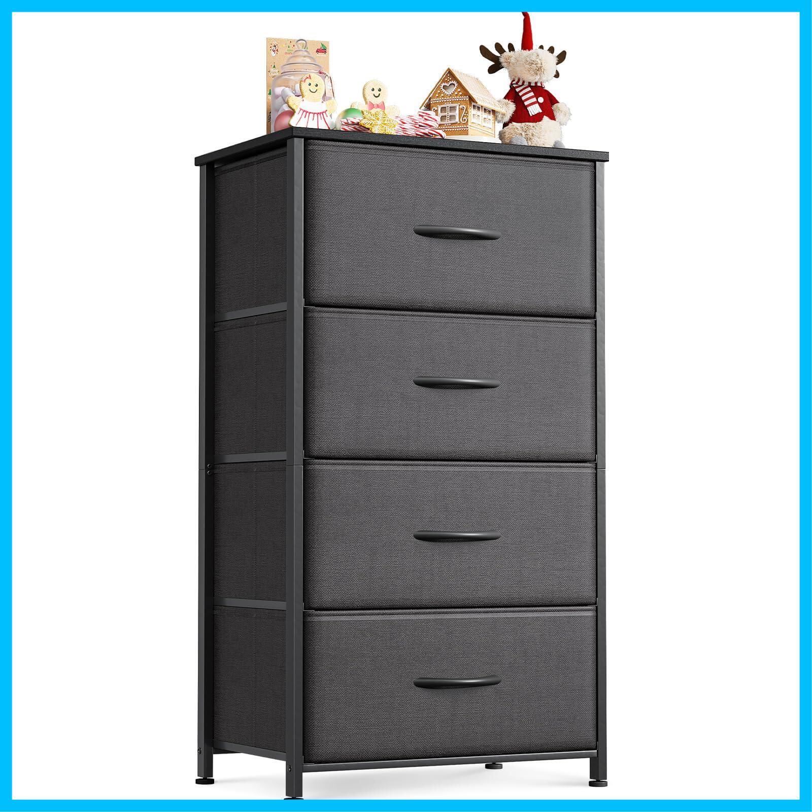 KKL チェスト タンス 衣類収納 収納ケース 引き出し リビング収納 布製 引き出し 衣装ケース 箪笥 転倒防止 低ホルム 安定感 4段 【幅40×奥行30×高さ80cm】 ダークグレー | Lulu