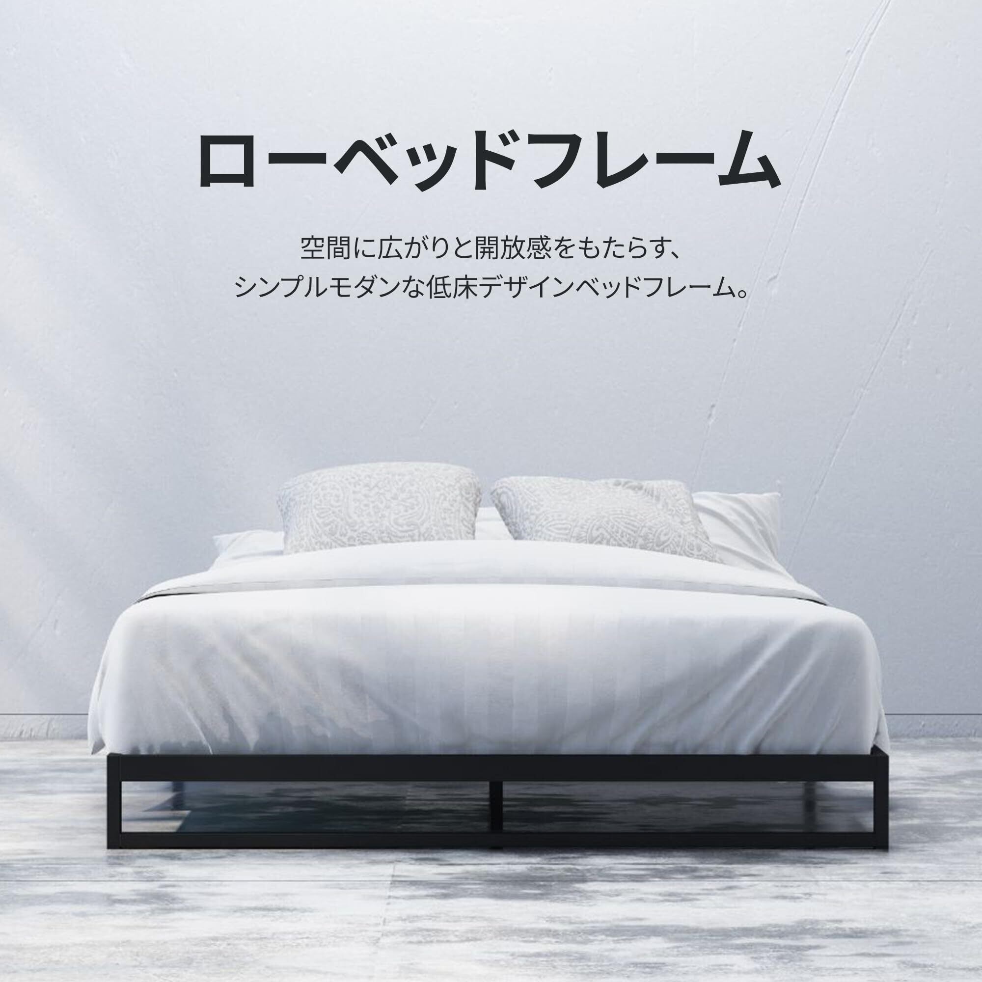 【低床デザイン】 ベッドフレームの高さを低くすることで空間を広く感じられます。