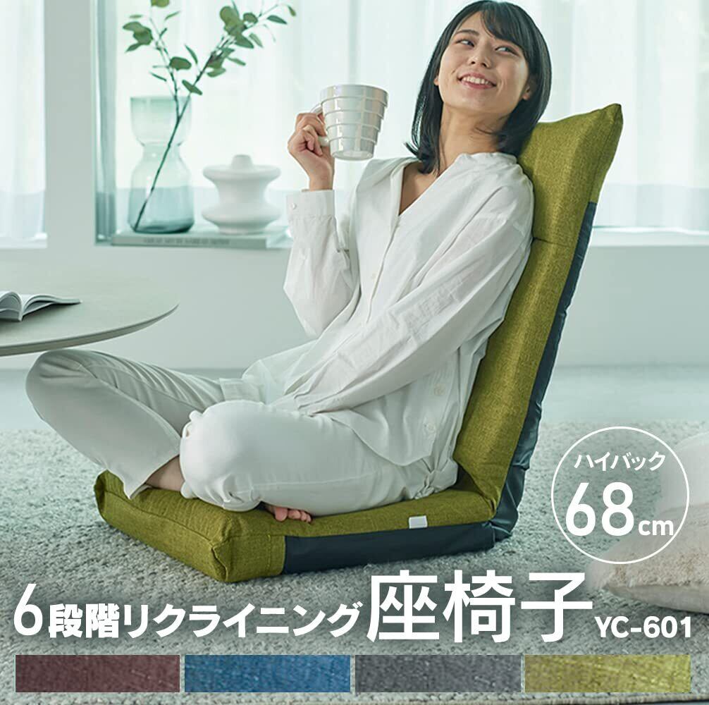 アイリスプラザ(IRIS PLAZA) 座椅子 デニムブルー 幅約46×奥行約58×高さ約68cm リクライニング YC-601