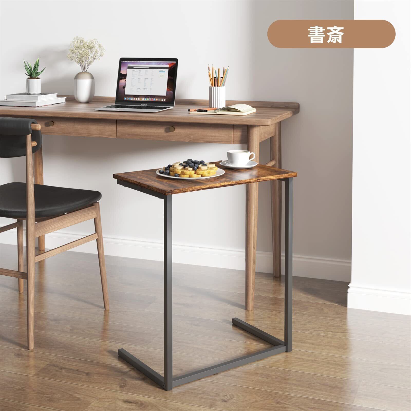【幅広い用途】優しい風合いの木目調天然風とアイアンの現代風を合わせた落ち着いたダークブラウン調,リビングルームに置いてコーヒーを飲んでも、バルコニーや庭に置いて花などを並べても、環境と調和しています。ソファに差し込めるから、座りながらのティータイムも快適に過ごせる。リビングでソファーサイドテーブルとして、寝室でナイトサイドテーブルとして、書斎でデスクサイドテーブルとして、オフィスでコーヒーサイドテーブルとして、様々なシーンで活躍する多目的サイドテーブルです。