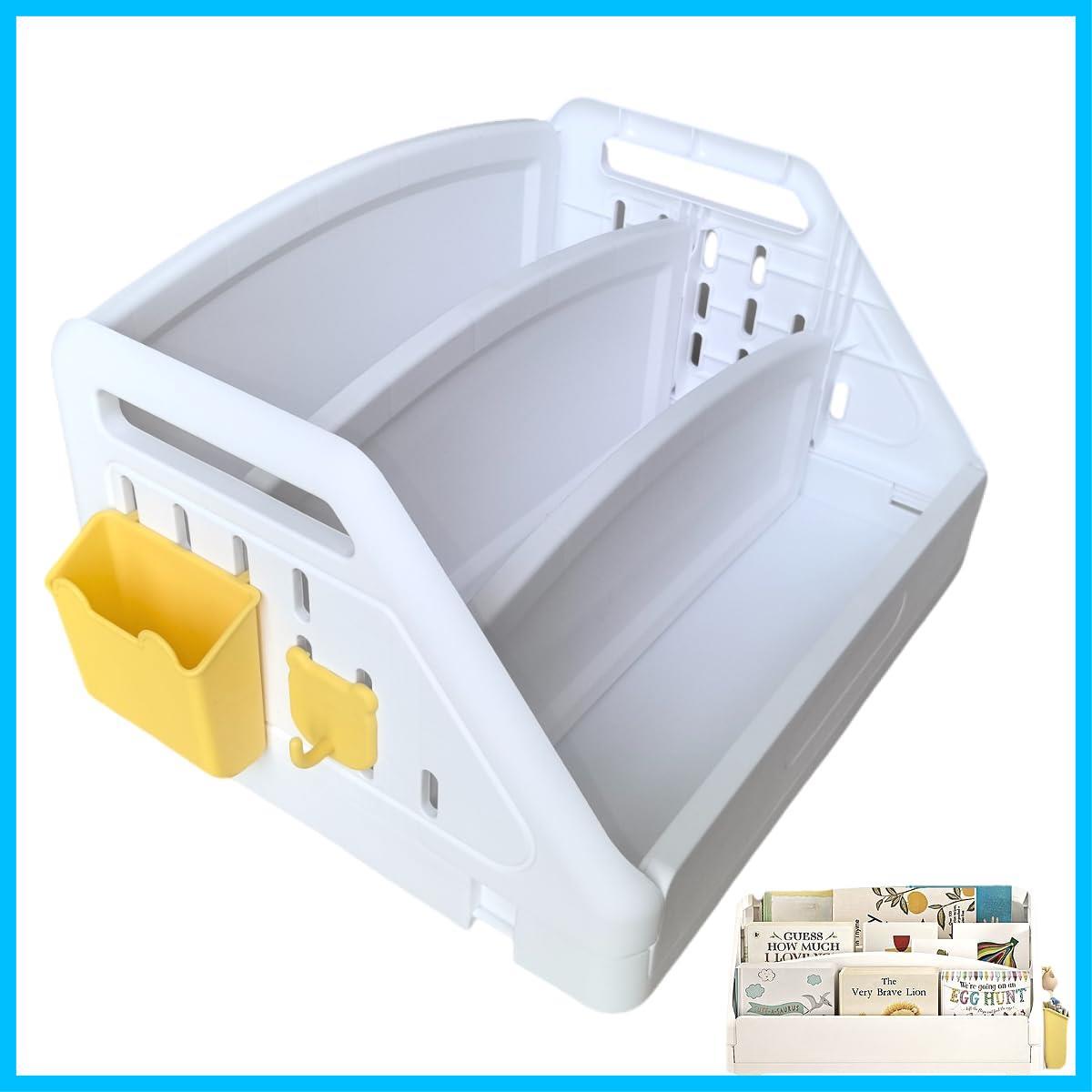 Little Beanキッズ 絵本ラック 子供本棚 大容量 3段 収納ラック おもちゃ整理棚 デスク収納 ベビー絵本整理 持ち手付き 軽量 移動可能 38×30.5×22.3cm 掛けかご&フック付き 安全素材 PP製 (ホワイト) | Lulu
