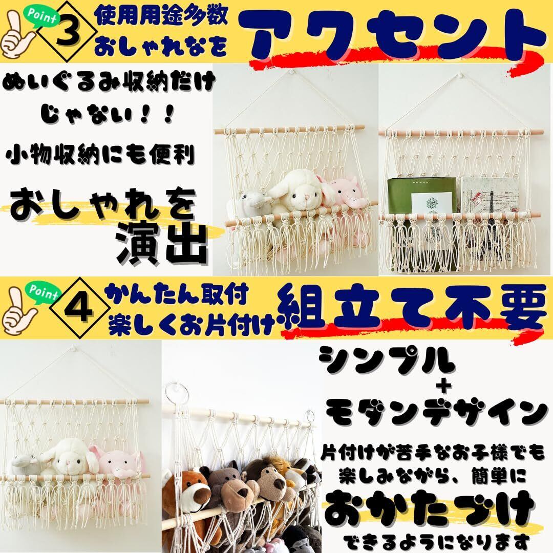 【安全性】安心してお使いいただける耐久性!丈夫なネットと強固な取り付けフックで、たくさんのぬいぐるみをしっかりと支えます。お子様が安全に使えるように設計されており、親御さんも安心です。