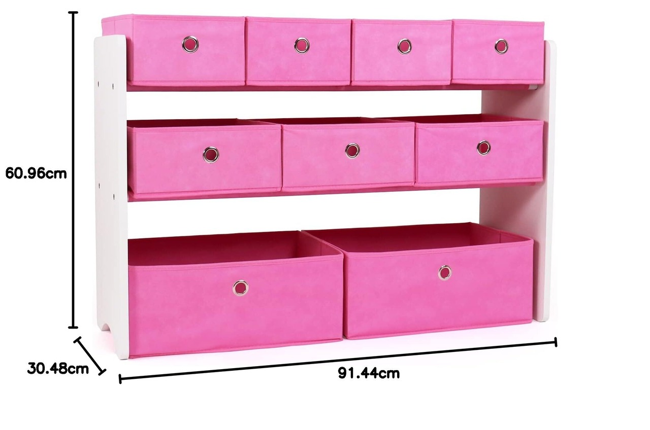 ハンブルクルー(Humble Crew) 子ども用おもちゃ収納オーガナイザー ホワイトとピンク 幅91cm×奥行き30cm×高さ61cm 折りたたみ可能な布製収納箱9個付き 【日本正規輸入品】 | Lulu
