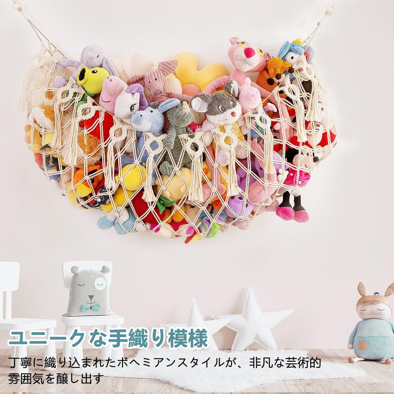 【知育効果】お子様の手の届く高さに設置すれば、おもちゃの整理整頓を促す知育効果も期待できます。タッセルで飾られたぬいぐるみ収納ネットは、あなたの子供の柔らかいおもちゃやぬいぐるみのコレクションを保存し、表示するための楽しい方法。
