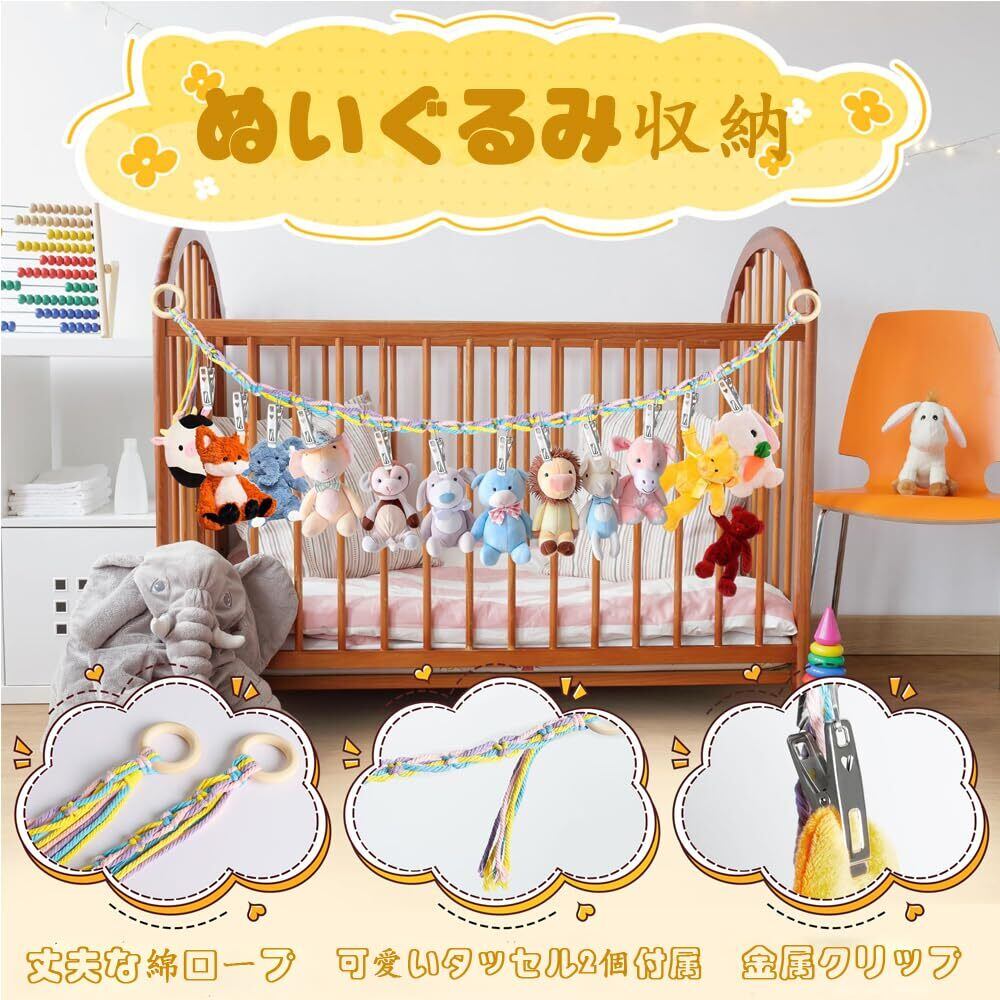 【商品仕様】セット内容:2mの綿ロープ*1 金属クリップ*20 壁掛けフック*2。吊り下げ式のぬいぐるみ収納は、お子様の寝室に自由奔放な装飾スタイルを与え、ご自宅をより快適にします。