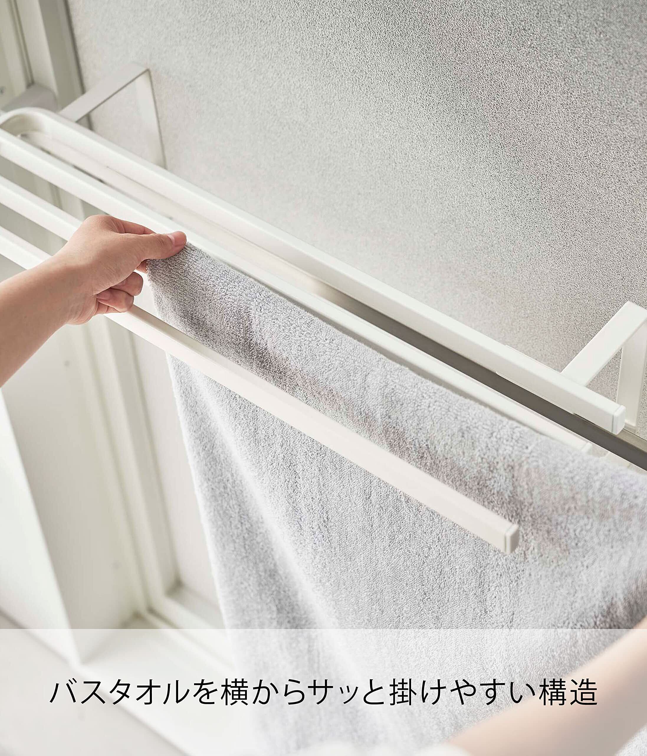 山崎実業(Yamazaki) 浴室扉 タオル掛け上 バスタオルハンガー ホワイト 約W57.5×D22.3×H17cm タワー tower バスタオルバー 簡単設置 パジャマ置き場 5999 | Lulu