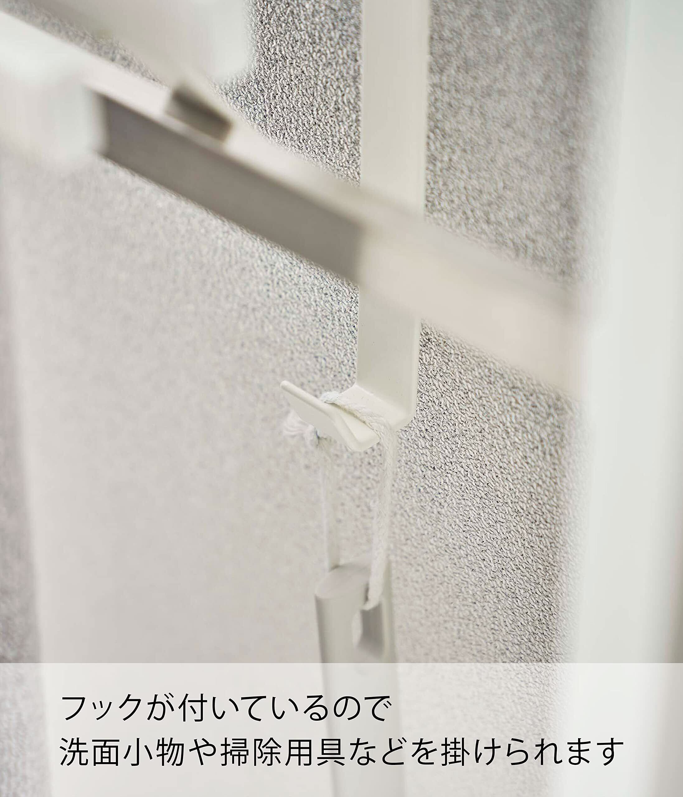 フックが付いているので、洗面小物や掃除用具も収納可能。