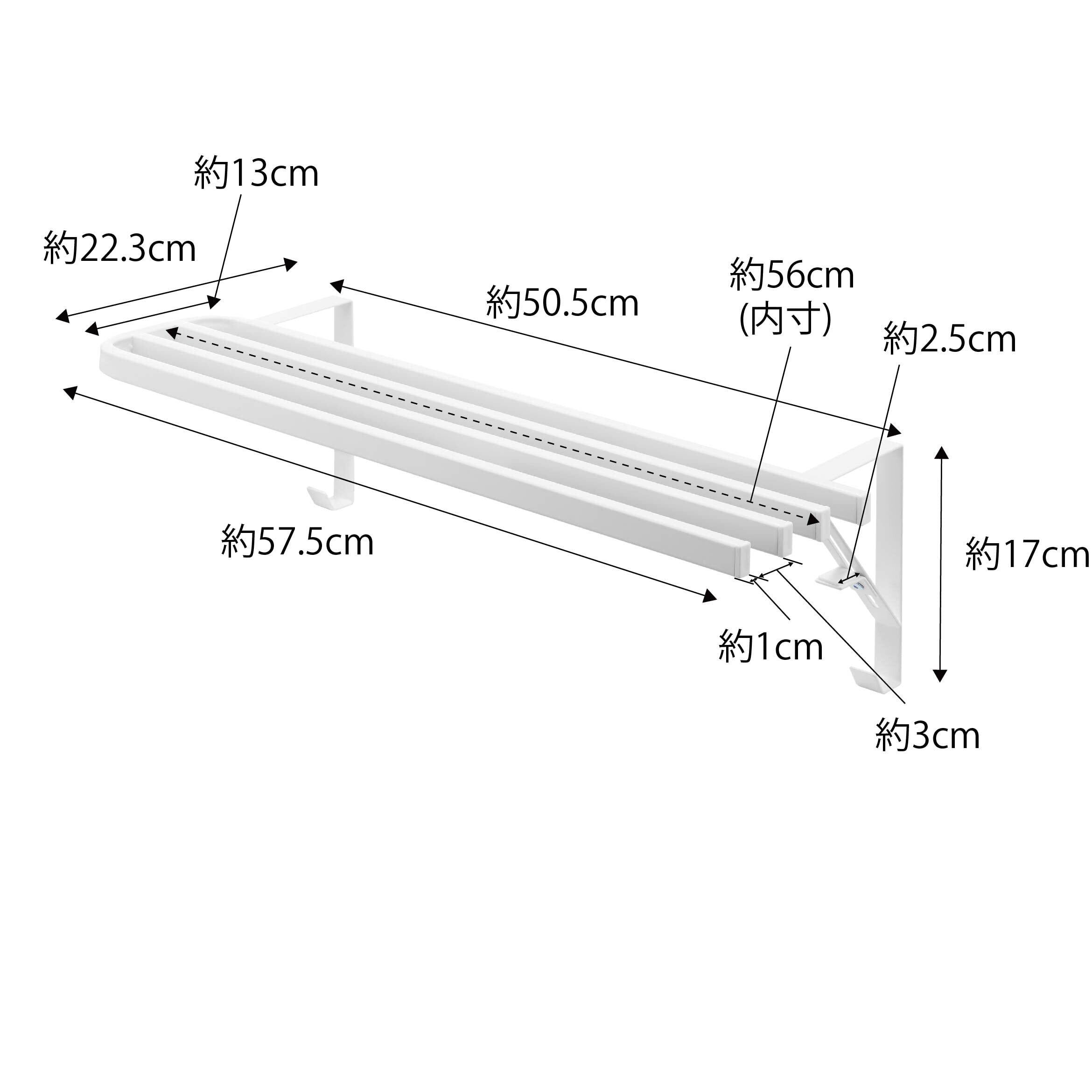 取り付け可能なタオルバー:内寸が幅約51cm以上奥行き約4cm以上