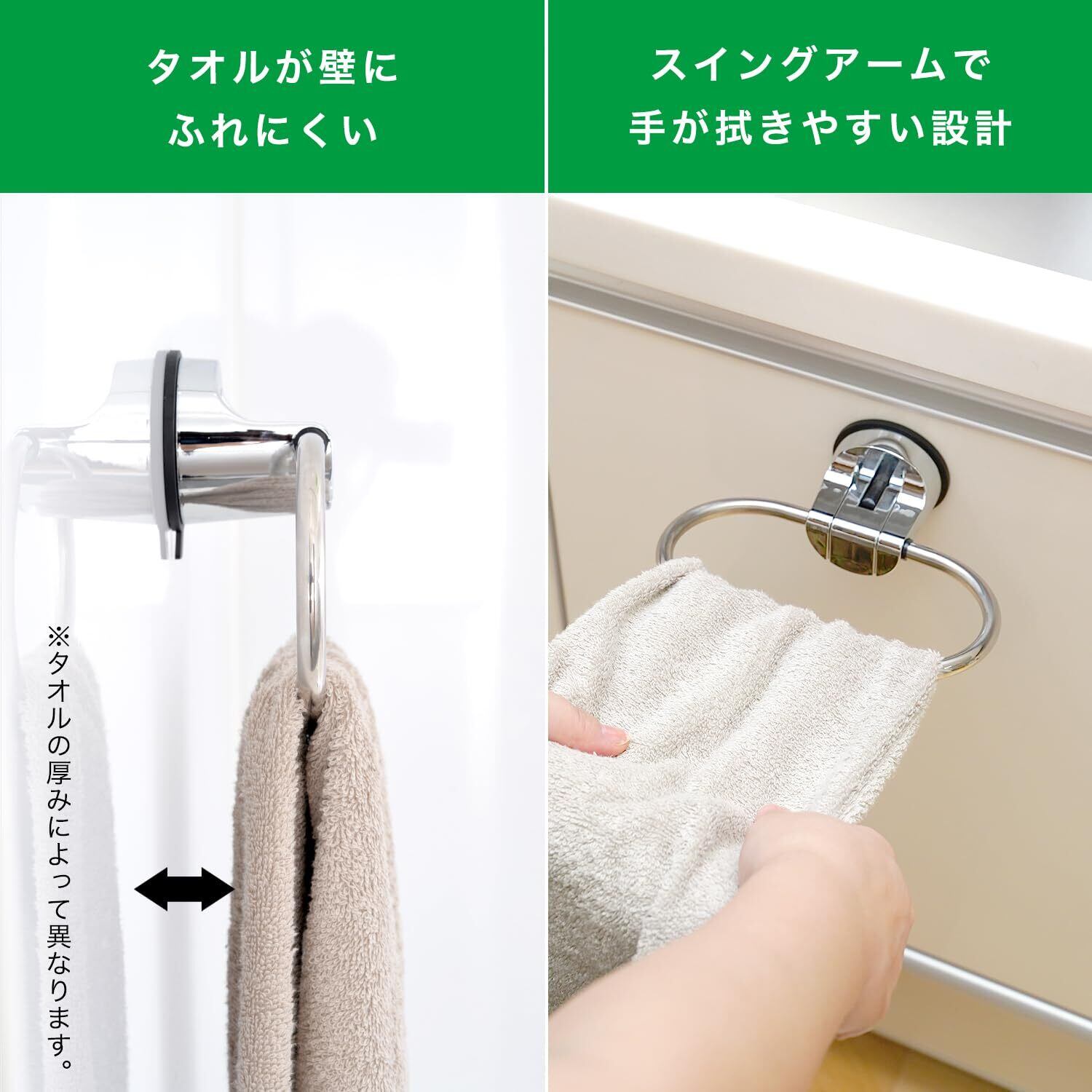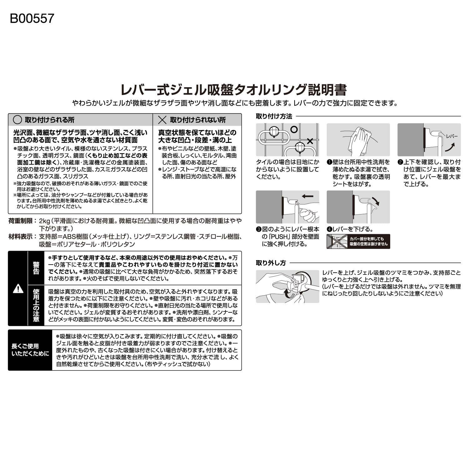 レバー式 ジェル吸盤 伸縮 タオルリング ステンレス全長 16.9cm(干幅15.2cm) 耐荷重2kg すごい吸盤 浴室のザラザラ壁にも