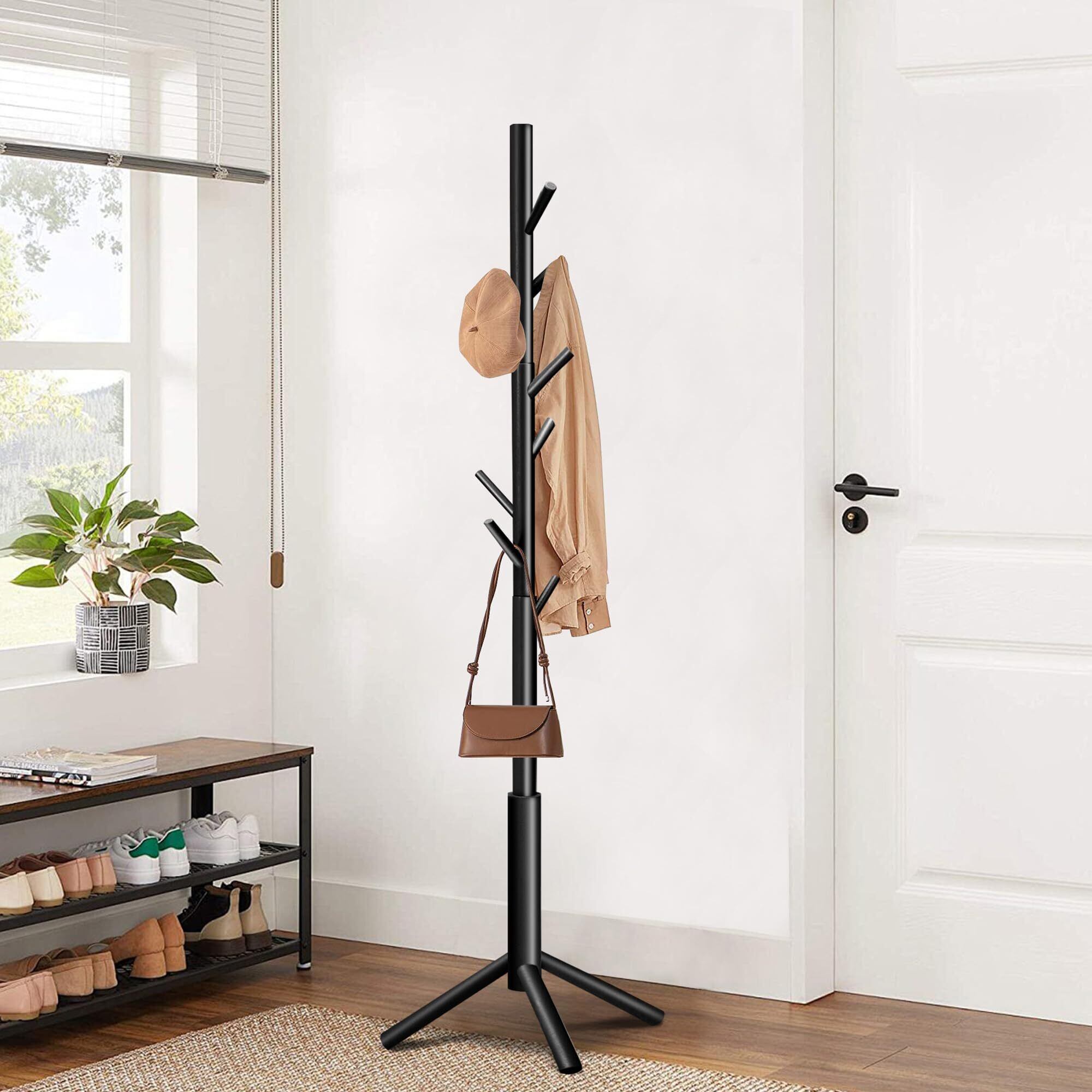 ポールハンガー 木製 衣類収納 コートハンガー 洋服ラック Azaeahom 40kg耐荷重 ハンガースタンド 枝型フック設計 高さ175cm 3段高さ調節可能 フック8個 組み立て簡単 ネジ式 倒れ防止 リビング 寝室 (ブラック) | Lulu