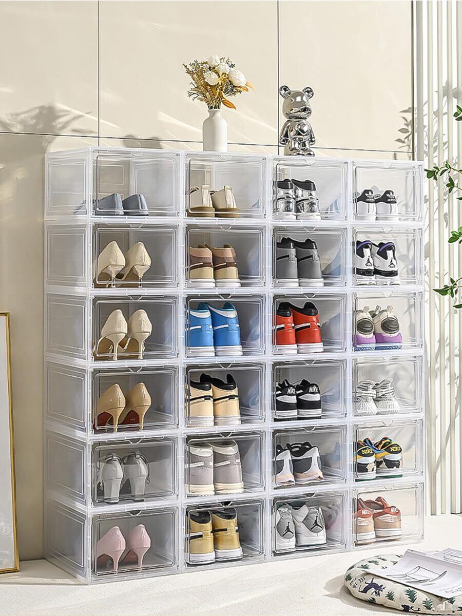 Findbetter シューズボックス 6個セット大容量収納ボックス 磁石開閉扉スニーカーボックス 小物文房具化粧品収納ケース 靴ケース 收纳靴箱 男女兼用シューズケース 玄関靴棚 組立て式 透明扉付き 6個セット トランスペアレント | Lulu
