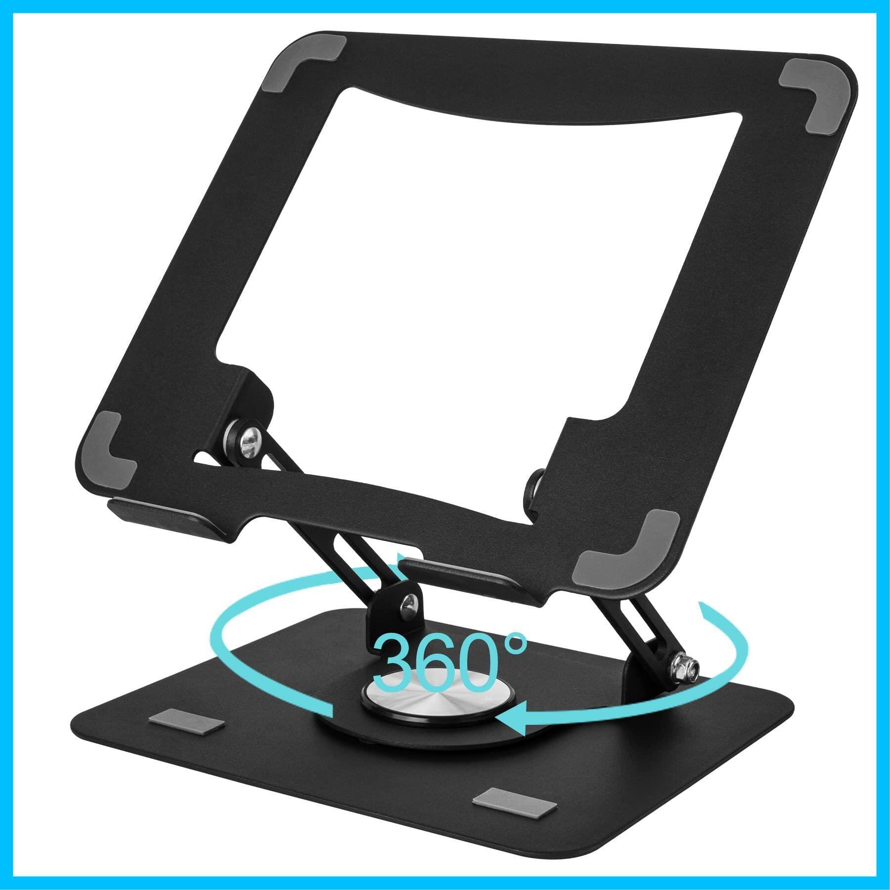 ノートパソコンスタンド 折りたたみ式 360°回転 ノートPC スタンド iPadスタンド角度/高さ無段階調節 人間工学 安定 放熱 姿勢改善 腰痛/猫背改善 PC/MacBook/ラップトップ/iPad/タブレットなどに対応 (ブラック)