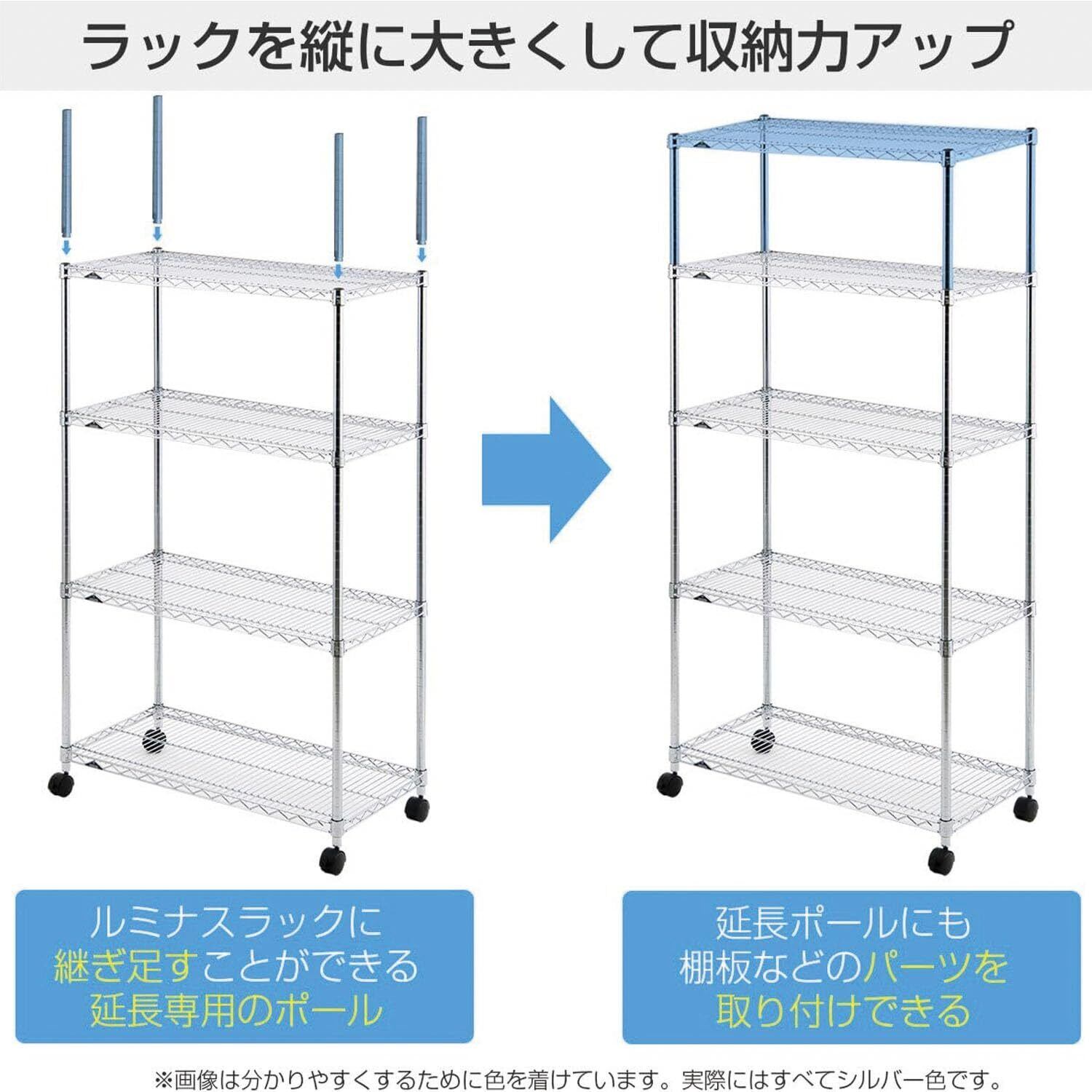 ドウシシャ ルミナス スチールラックパーツ 高さ延長ポール 支柱 2本セット ジョイント付き 高さ30cm ADD-P2530 ポール径25mm 収納力アップ 追加パーツ diy 後付け 業務用 頑丈 防サビ加工 スリム 細身 取付簡単 高さ継ぎ足し | Lulu