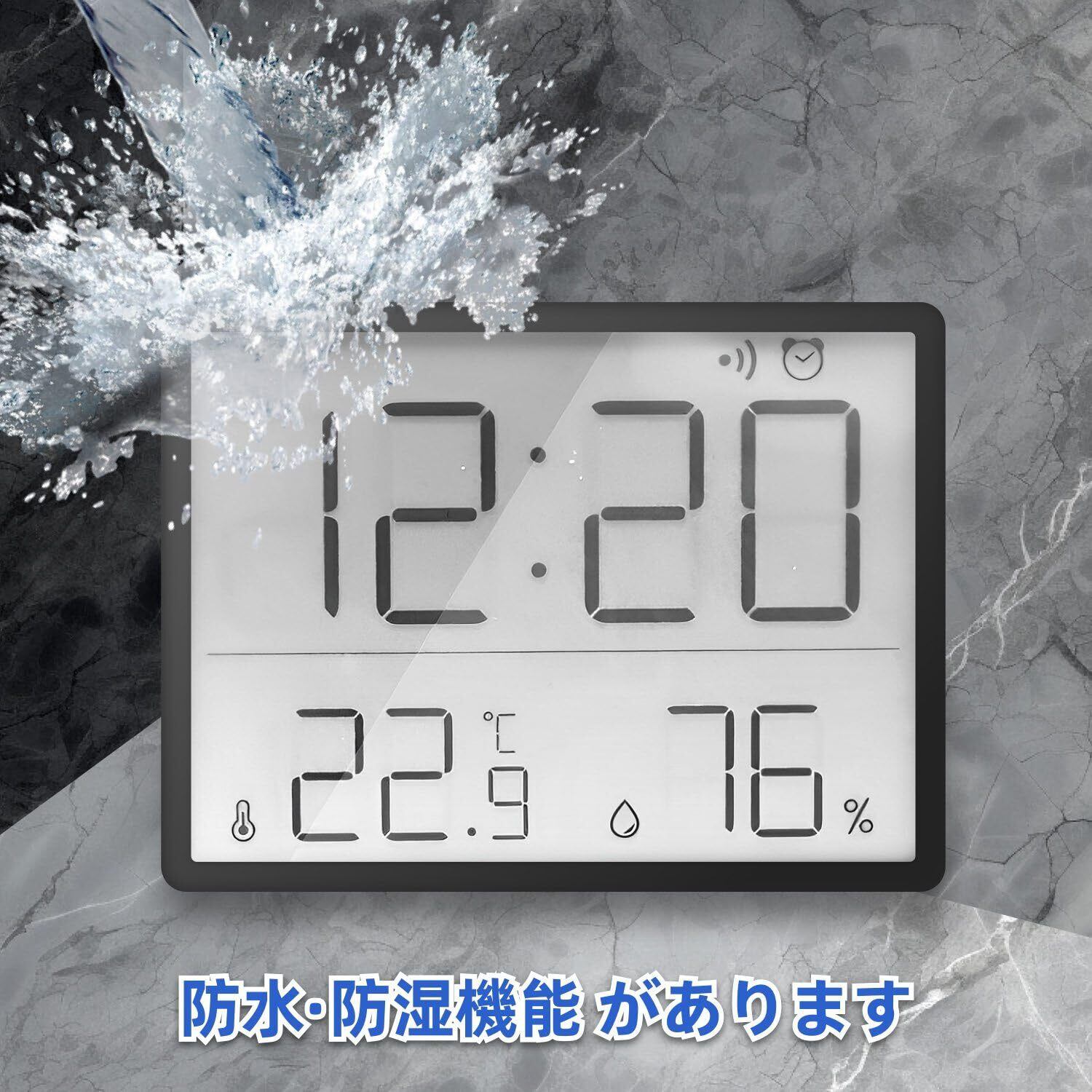 温度計 湿度計 時計 マグネット 高精度 温湿度計 デジタル 大画面 環境目安表示 快適 高湿 乾燥 時間日付表示 最高最低温湿度メモリー機能 マグネット 置き掛け兼用(ブラック)