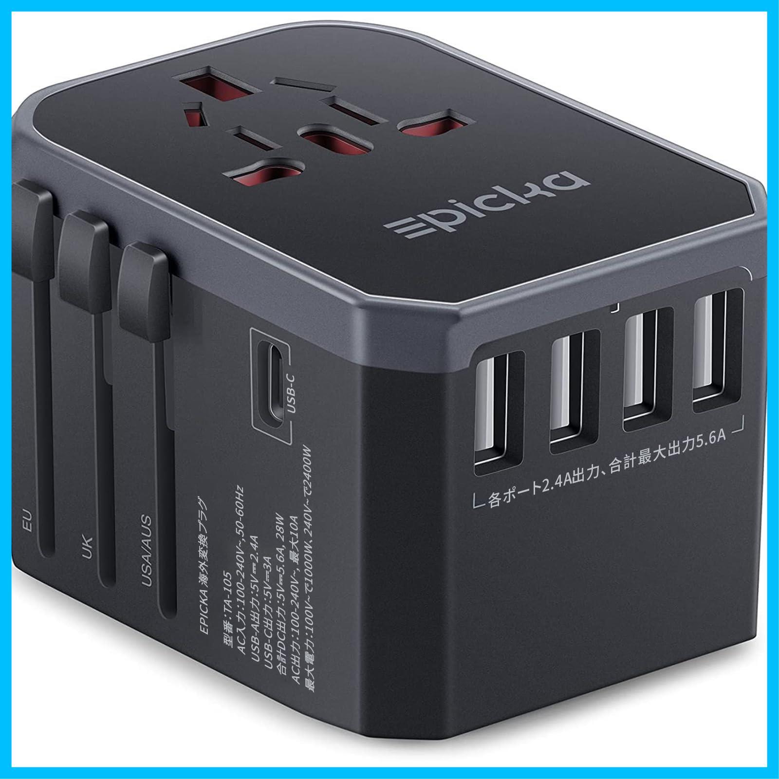 EPICKA 海外 変換プラグ 全世界対応 C/BF/O/Aタイプ マルチ変換プラグ 1つUSB-Cと4つUSB-Aポート付き ヨーロッパ/韓国/オーストラリア/イギリス/アメリカ/中国などの国に対応海外旅行用コンセント(ブラック)