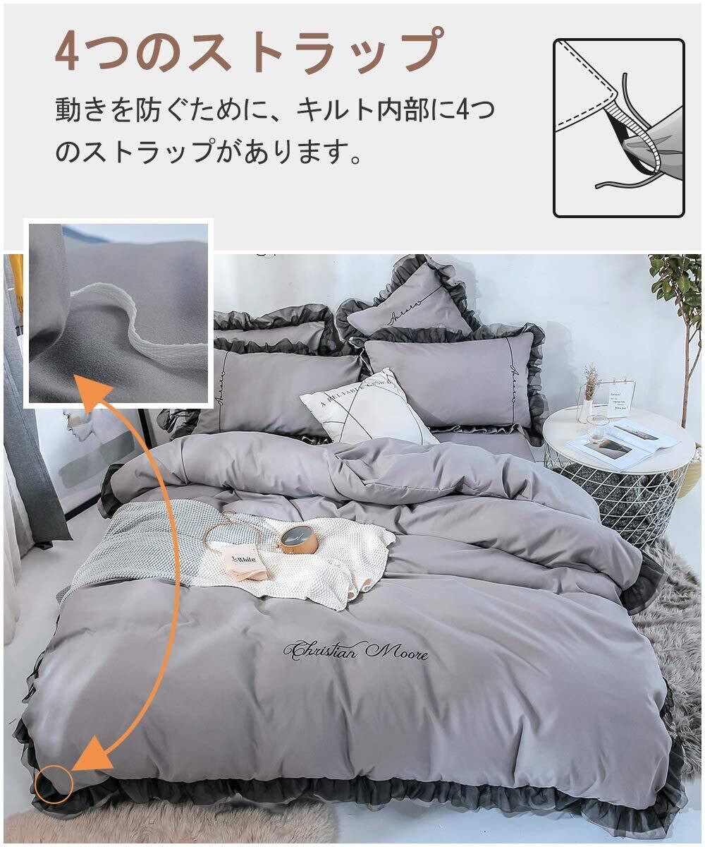 布団カバー シーツ 刺繍 蓮の葉 寝具カバーセット 掛け布団カバー ボックスシーツ 枕カバー ベッド用 布団用 洗い替え速乾タイプ(ライトグレー A11, シングル・3点セット)