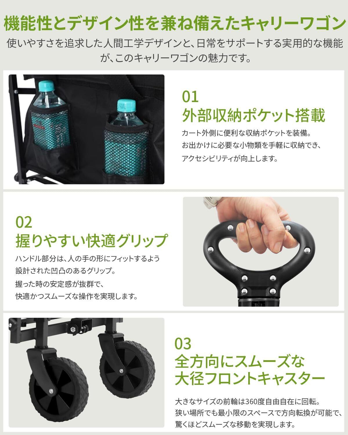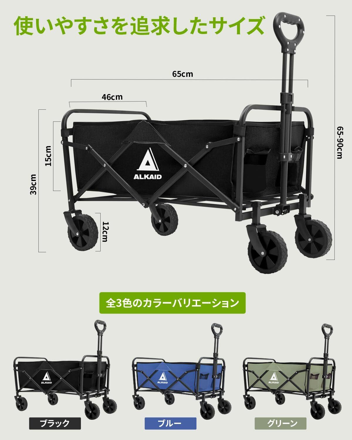 ALKAID キャリーワゴン キャリーカート アウトドアキャンプカート 折りたたみ式 ワイドタイヤ搭載 耐荷重100kg 大容量120L 自立式収納 コンパクト キャンプ BBQ 釣り 買い物 (グリーン) | Lulu