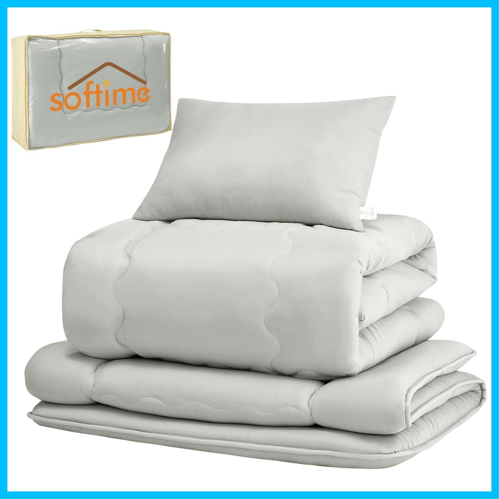 Softime 布団セット セミダブル 4点セット 中綿1.8kg掛け布団・高密度固綿入り 三層敷き布団・ふわふわ枕・便利な収納ケース 来客用布団セット SEK認証 抗菌 防臭 寝具セット ピーチスキン加工 オールシーズン グレー | Lulu
