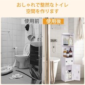 このスリムトイレ収納ラックは、狭いスペースを有効活用できる実用的な収納アイテムです。