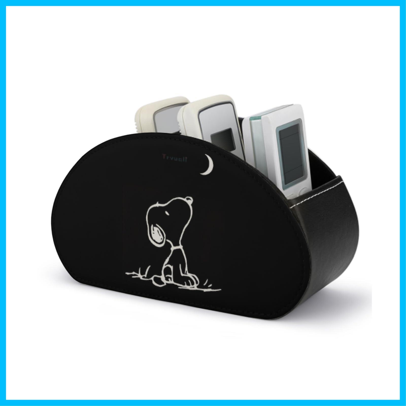 スヌーピー リモコンラック PUレザー製 卓上小物収納ケース 5格仕切り 多機能 テーブル リモコン立て 眼鏡スタンド 小物入れ コスメ 文房具 収納スタンド リモコンスタンド おしゃれ 防水 自宅 オフィス (ブラック) | Lulu