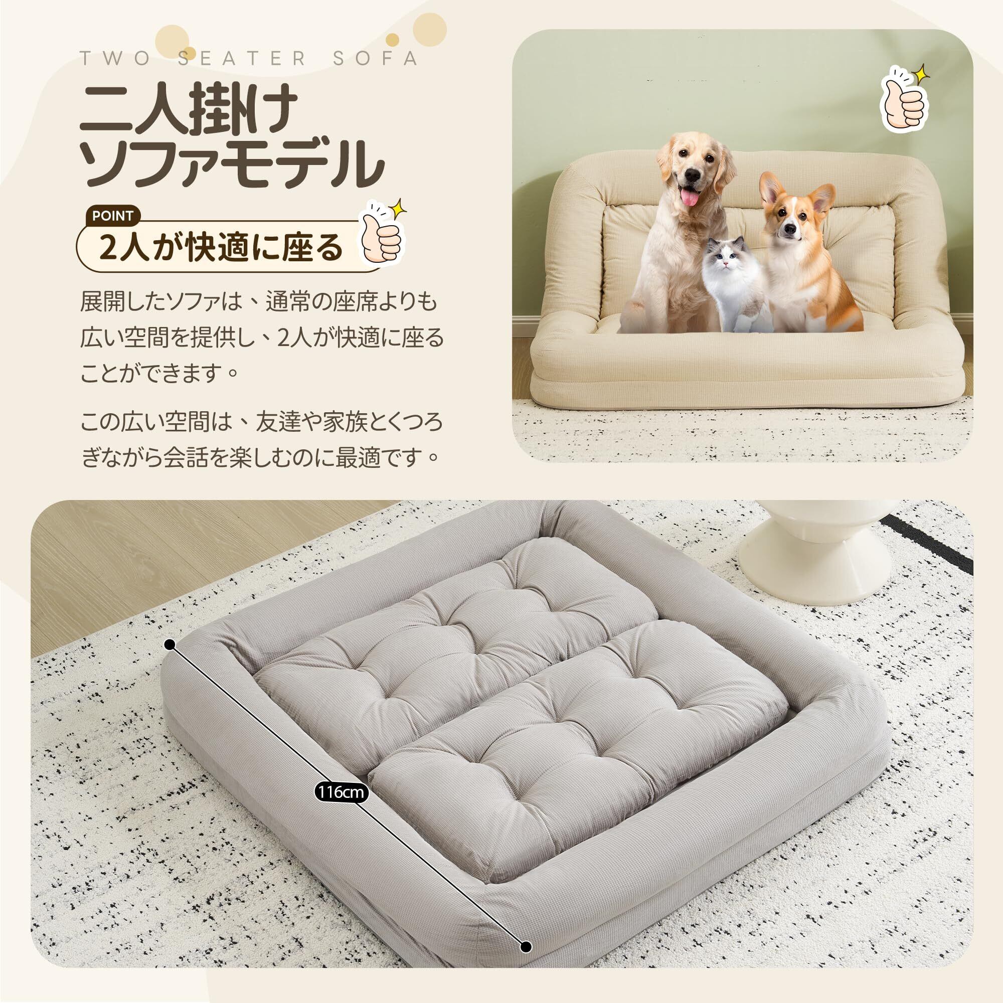 【3way ソファベッド】座椅子スタイル:集中して読書や作業をしたいときに、ぴったりなスタイルです。ベッドスタイル:疲れて少し休憩を々とりたい時、横になってお寛ぎいただけます。ソファスタイル:来客時に2人で一緒に楽しい時間を過ごしたい時、活躍するスタイルです。 【快適な座り心地】壁に寄りかからずとも、しっかりと体を支えることができます。優れたスポンジを使用しており、まるでビーチで寝転がっているような感覚を楽しめます。インテリアに最適なカラーで、お部屋にぴったりなソファーベッドです。快適さと丈夫さを兼ね備えています。 【座り心地が良い】ファブリック素材は肌触りが良く通気性に優れており、一年中快適にご利用いただけます。 【6段階リクライニング仕様】お好みの角度が見つかるテレビ鑑賞やお昼寝など、シーンに合わせて心地よい角度に調整できます!
