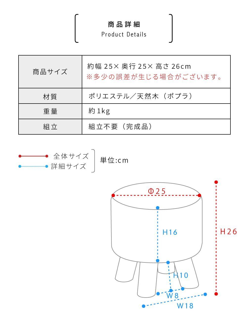 パレットライフ スツール おしゃれ 北欧 高さ26cm 木製 木脚 チェア チェアー 椅子 イス 背もたれなし 低い 低め 小さい 小さめ コンパクト ミニ 木製 丸い 丸型 円形 ナチュラル カバーリング 洗える グレー
