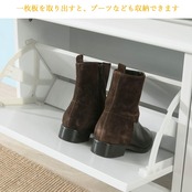 【大容量の収納スペース】家族でも収納できる大容量収納ベンチ、外寸で32cmの靴最大8足まで収納可能です。