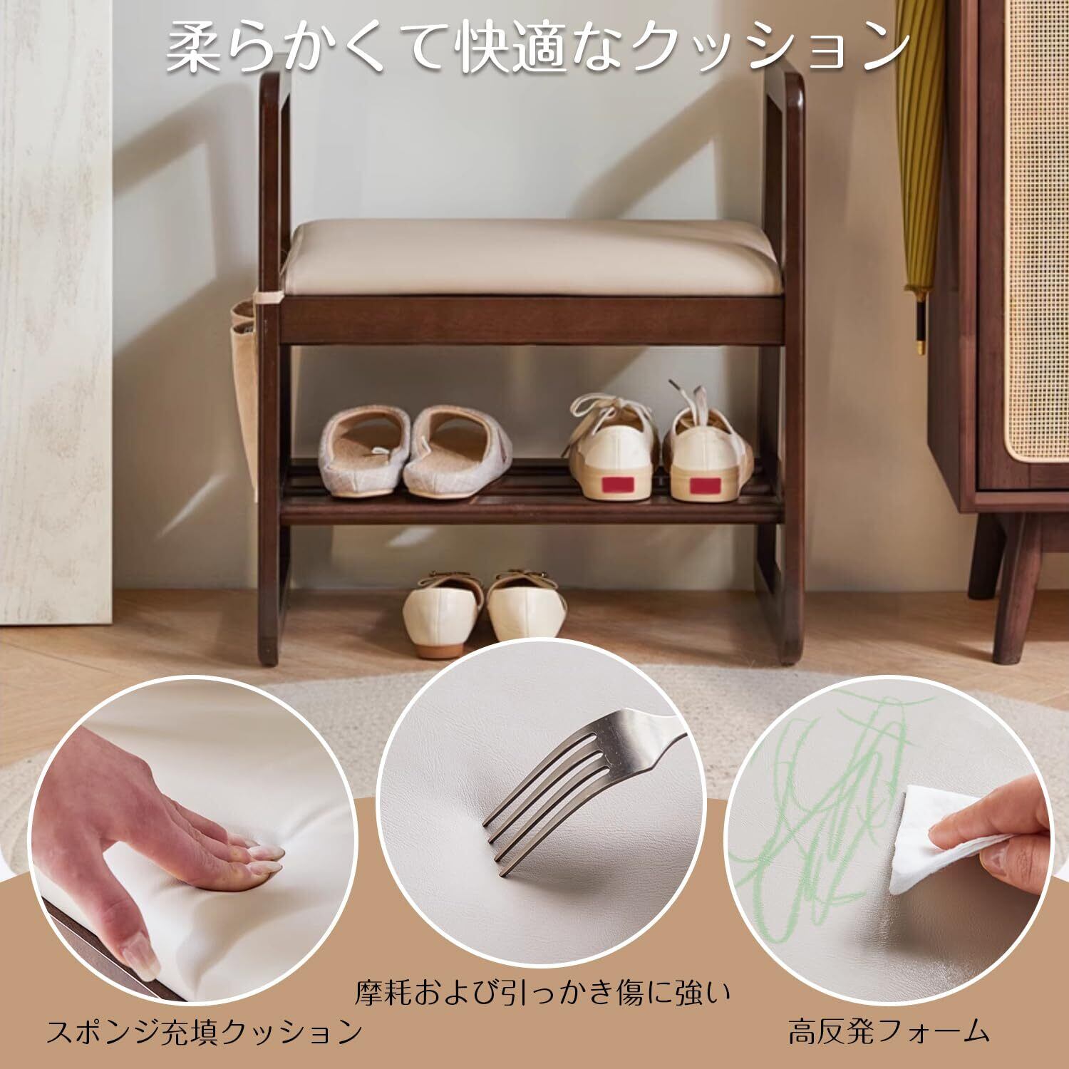 Forthcan玄関椅子 玄関ベンチ ナチュラル 木製 棚付き チェア 介護用 椅子 高齢者 立ち上がりやすい 幅55×奥行36×高さ65cm